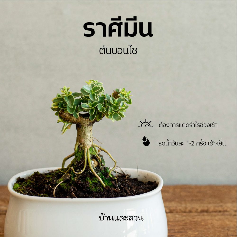 ชาวราศีมีน เป็นคนที่มีความคิดสร้างสรรค์ ปรับตัวได้ดี จึงเหมาะกับการปลูก “บอนไซ” ในภาพเป็นต้นเพรมน่าด่าง ซึ่งในการปลูกบอนไซมีความเชื่อกันว่าจะช่วยส่งเสริมให้มีความอดทน เอาตัวรอดได้ในทุกสถานการณ์