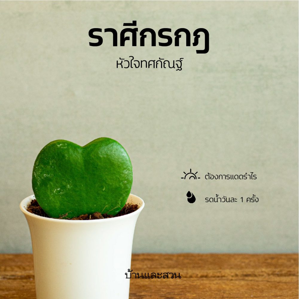 ชาวราศีกรกฎ เป็นคนที่เรียบง่าย ใช้ชีวิตแบบสบาย ๆ ไม่ชอบความเป็นระเบียบ มีอารมณ์อ่อนไหวง่าย รักบ้าน รักครอบครัว รักเพื่อนฝูง ชอบปกป้องคนรอบข้าง จึงเหมาะกับ “ต้นหัวใจทศกัณฐ์” เรียกอีกชื่อหนึ่งว่า ต้นโฮย่า มีความเชื่อกันว่าจะนำพาความสุขและโชคลาภให้แก่ครอบครัว เสริมการงาน และยังนิยมมอบให้กันในวันวาเลนไทน์