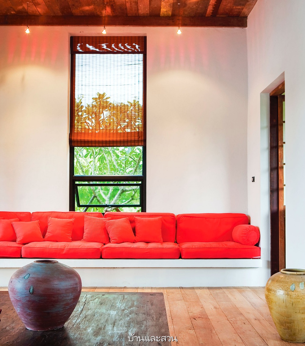 บ้านจีนแฝดหลังนี้ทำให้เราประทับใจกับแนวคิดการผสมผสานสไตล์เก่าและใหม่ไว้ด้วยกัน รวมทั้งดึงข้อดีของบ้านสไตล์จีนและไทยมาประยุกต์รวมกันได้อย่างเหมาะสมลงตัว เข้ากันดีกับสภาพแวดล้อมและภูมิอากาศในบ้านเรา จึงเป็นบ้านพักตากอากาศในฝันของใครหลายคนที่มีโอกาสมาเยี่ยมเยียนจริงๆ บ้านปูนชั้นเดียว
