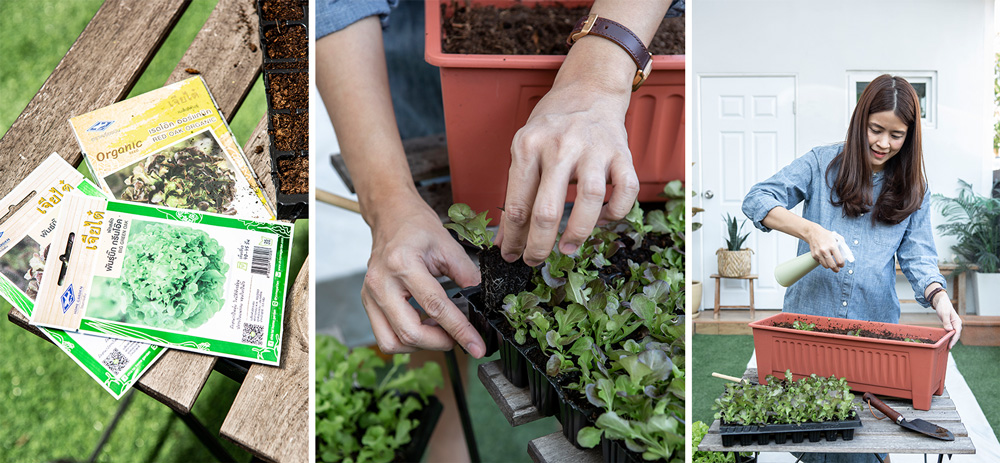 “ พอมีพิกเซลเรื่องชีวิตความเป็นอยู่ของเขา รวมไปถึงอาหารการกินก็ยิ่งต้องใส่ใจ ส่วนใหญ่เราเป็นทำอาหารให้เขาทาน แล้วเขาเป็นคนที่ชอบทานผักอยู่แล้วด้วย เราเลยยิ่งสนุกไปใหญ่กับการครีเอทเมนูนั้น เมนูนี้ ของที่นำมาปรุงให้ลูก คนเป็นแม่ก็ต้องเลือกแล้วว่าดีและมีประโยชน์ เคยคิดหลายครั้งว่าจะลองปลูกผักไว้ทานเอง แต่บ้านเราพื้นที่ก็ไม่เอื้อต่อการปลูกผัก พอดีกับทางเจียไต๋ เขาส่งเมล็ดพันธุ์ผักสลัดมาให้ลองปลูกดู ตอนแรกก็เป็นกังวลนะว่าจะปลูกลงกระถางได้หรือเปล่า ผักสลัดจะดูแลยากไหม พอได้ซองเมล็ดพันธุ์มาก็โล่งใจเลย เพราะที่แพคเกจเขาก็มีวิธีการปลูกมาให้พร้อมภาพประกอบแบบที่เข้าใจง่าย ดูแปปเดียวก็เข้าใจเลย คราวนี้ก็สะดวกแล้วก็ง่ายมาก ๆ แล้วผักสลัดนี่ก็นำมาปรุงอาหารได้ง่าย จะทานสด ๆ ได้เลย จะนำไปม้วนเป็นสลัดโรล เติมเนื้อสัตว์พวกหมูสับ ปูอัดเพิ่มนิดหน่อยพิกเซลเขาก็ชอบ หรือจะกินแนมกับสเต็กง่าย ๆ เพิ่มวิตามินในมื้ออาหารได้อีก ”
