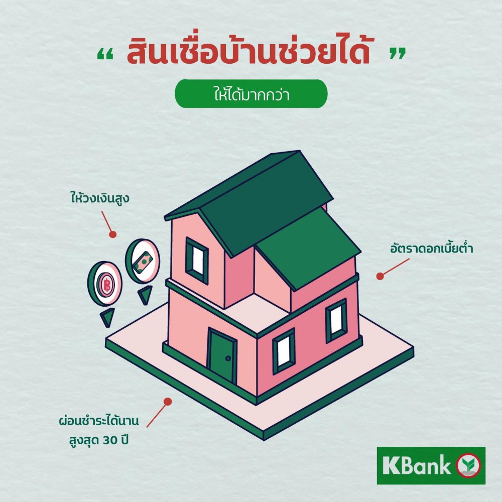 ความสุขในบ้านแบบที่ฝันเกิดขึ้นได้ไม่ยาก สินเชื่อบ้านช่วยได้ของธนาคารกสิกรไทย มอบอัตราดอกเบี้ยที่ต่ำกว่าสินเชื่อประเภทอื่นๆ ช่วยลดภาระดอกเบี้ยที่เกินจำเป็น ทั้งยังอนุมัติให้วงเงินสูงสุดถึง90% ของราคาประเมินหลักประกัน พร้อมสามารถเลือกระยะเวลาผ่อนชำระได้นาน สูงสุดถึง 30 ปี ช่วยแบ่งเบาภาระการผ่อนต่อเดือนแบบสบายๆ