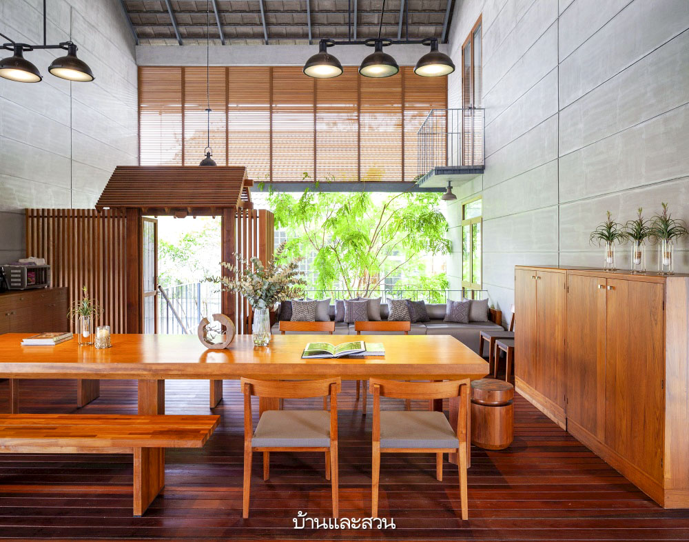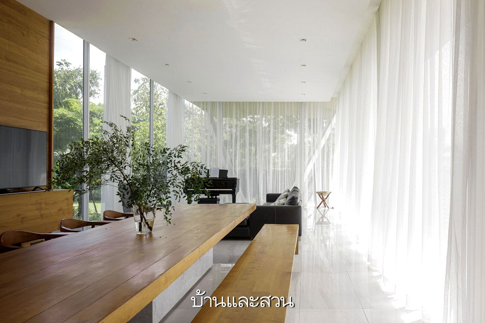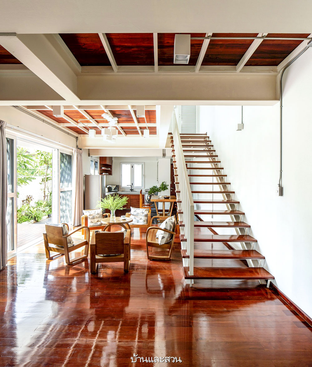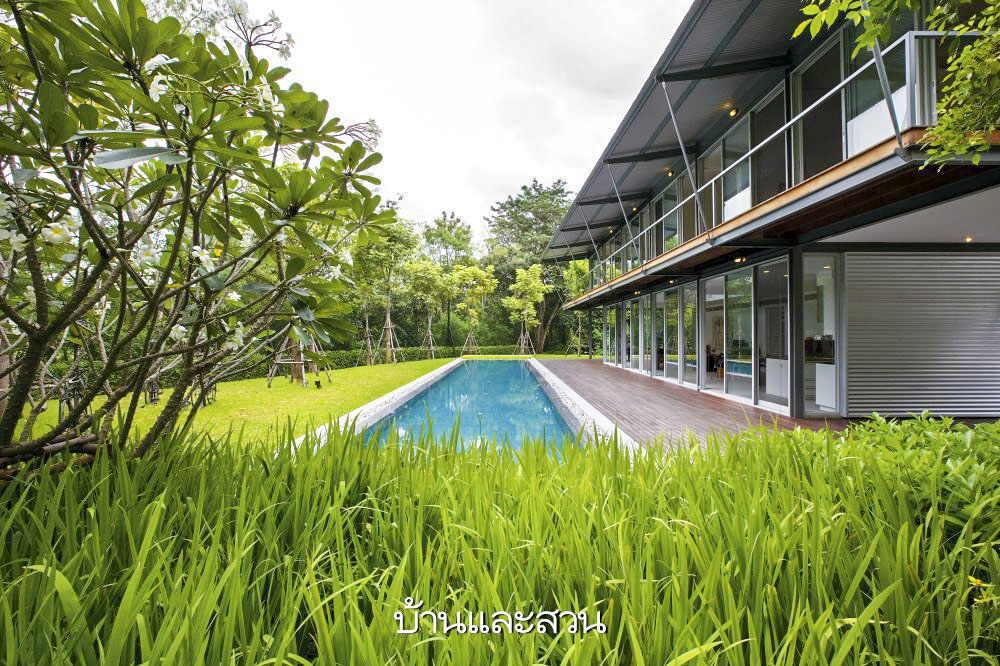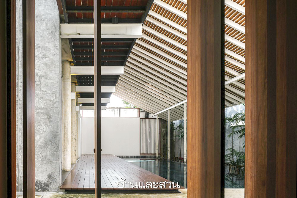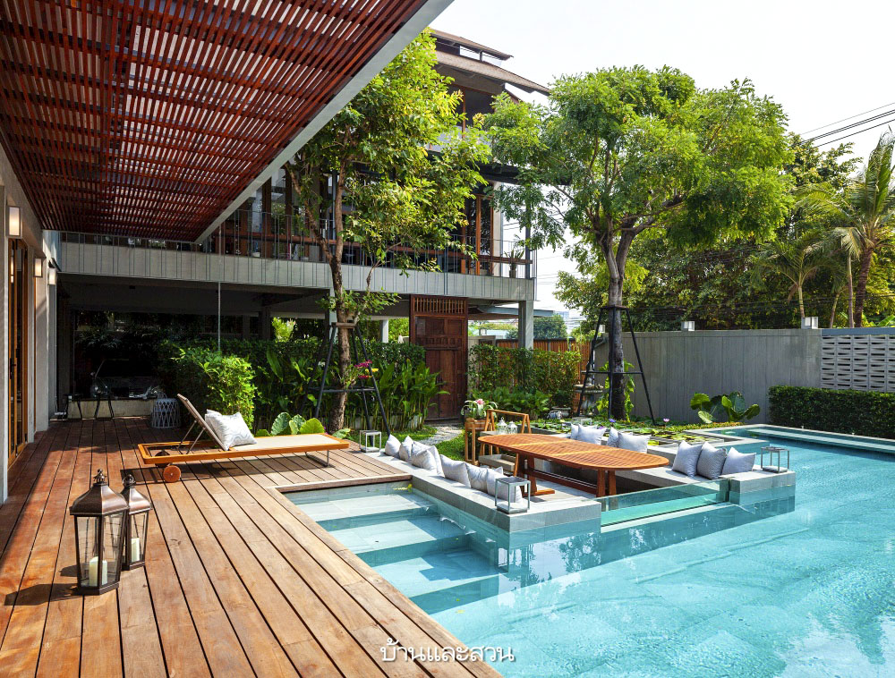 บ้านโมเดิร์นภูมิปัญญาไทยที่เชื่อมสระว่ายน้ำและสวนหย่อมมาไว้ใต้ถุน