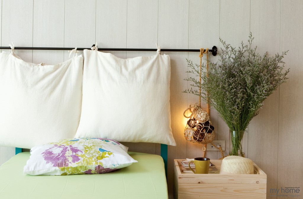 ห้องนอนเล็กเลือกผ้าม่านลวดลายธรรมชาติ และผ้าชายเตียงที่เพิ่มความน่ารัก ตกแต่งผนังหัวเตียงด้วยภาพแขวนผนัง ของสะสมและโคมไฟสไตล์วินเทจ ชมมุมอื่นๆของบ้านหลังนี้ คลิก>>