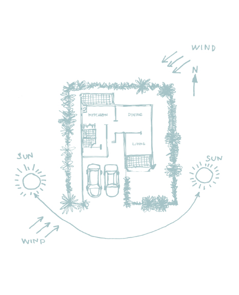 สำหรับเรื่องลมธรรมชาตินั้นในบ้านเรามีลมประจำอยู่สองทิศทาง คือ ลมมรสุมกลางปี ช่วงประมาณเดือนพฤษภาคมถึงตุลาคม ลมนี้จะพัดจากทิศใต้และทิศตะวันตกเฉียงใต้ ส่วนอีกทิศทางคือลมมรสุมปลายปีและต้นปี อยู่ในช่วงประมาณเดือนธันวาคมถึงกุมภาพันธ์ ลมนี้จะพัดจากทิศเหนือและทิศตะวันออกเฉียงเหนือ แต่ลมประจำส่วนใหญ่นั้นพัดจากทิศใต้และตะวันตกเฉียงใต้เป็นหลัก ทิศที่ลมพัดมาถี่มากที่สุดคือทิศใต้ ดังนั้นผนังด้านทิศใต้และทิศเหนือควรมีช่องเปิดระบายอากาศที่มีขนาดใหญ่เพื่อให้ลมธรรมชาติพัดผ่านได้โดยสะดวก