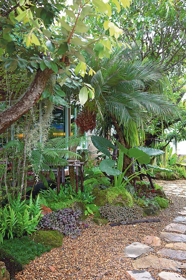 เป็นสวนที่มีความเป็นธรรมชาติเน้นไม้เมืองร้อนที่มีสีเขียวแซมด้วยไม้ดอกและไม้ใบสีสดจัดนิยมใช้กรวดแม่น้ำแบนคละสีหรือกรวดแม่น้ำสีน้ำผึ้งขนาดเล็กปูสลับกับหินกาบเป็นทางเดินให้ดูกลมกลืนกับต้นไม้และมีบรรยากาศร่มรื่น