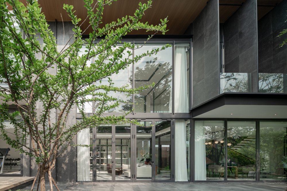 บ้านโมเดิร์นผนังกระจก ที่ใช้สวนเป็นรั้วธรรมชาติป้องกันแดดและความร้อน