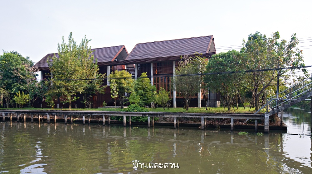 บ้านไม้ยกใต้ถุนสูง ที่มีคาเฟ่อยู่ข้างล่าง ยกใต้ถุนสูงคร่อมอยู่เหนือร่องสวนทุเรียนเก่า โดดเด่นด้วยหลังคาทรงจั่วที่มองเห็นด้านจั่วสามเหลี่ยมได้จากทุกมุม >> อ่านต่อ