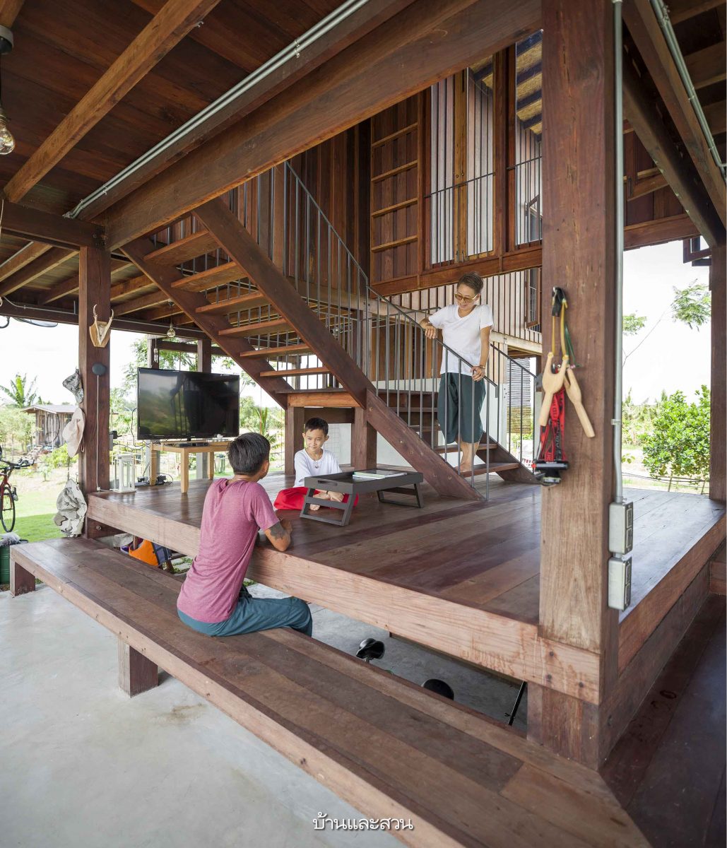 บ้านไม้ ของสถาปนิก ที่ผสมผสานระหว่างสถาปัตยกรรมพื้นถิ่นภาคเหนือดั้งเดิมที่มีลักษณะยกใต้ถุนสูง นำมาออกแบบร่วมกับการยกใต้ถุนเตี้ย เพื่อให้เด็กเเละคนเฒ่าคนแก่เข้าถึงได้ง่าย สามารถหยิบจับของใช้ได้สะดวกจากด้านล่าง รวมถึงเป็นพื้นที่สำหรับเก็บเครื่องมือทางการเกษตรเเละวัตถุดิบที่ใช้ในครัวเรือน ส่วนใต้ถุนสูงกลายเป็นพื้นที่ใช้สอยสำหรับทำเวิร์กช็อปไม้เเละพื้นที่นั่งเล่น >> อ่านต่อ