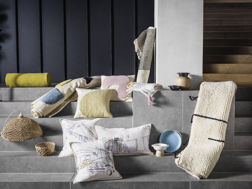 อคานชา เดโอ (Akanksha Deo) นักออกแบบชาวอินเดียของอิเกีย ประจำกรุงเดลีได้นำเสนอไอเท็มที่น่าสนใจอย่างโคมไฟสานจากใยกล้วย ซึ่งเป็นวัสดุเหลือทิ้งจากจากโรงงาน ผ่านความร่วมมือกับกิจการเพื่อสังคมของอินเดียอย่าง Industree เปิดโอกาสให้ผู้หญิงในชนบทหาเลี้ยงชีพด้วยทักษะด้านงานฝีมือ รวมถึงปลอกหมอนอิงและพรมที่ทอโดยกลุ่มแรงงานช่างทอหญิงจาก Diamond ซึ่งเธอได้นำเอารูปทรงที่สื่อถึงความเป็นอินเดียมาถ่ายทอดในรูปแบบร่วมสมัย ผ่านผืนพรมทอมือจากผ้าวูล 100% ซึ่งเป็นวัสดุที่มีความยั่งยืน หมุนเวียนได้ และมีความทนทาน