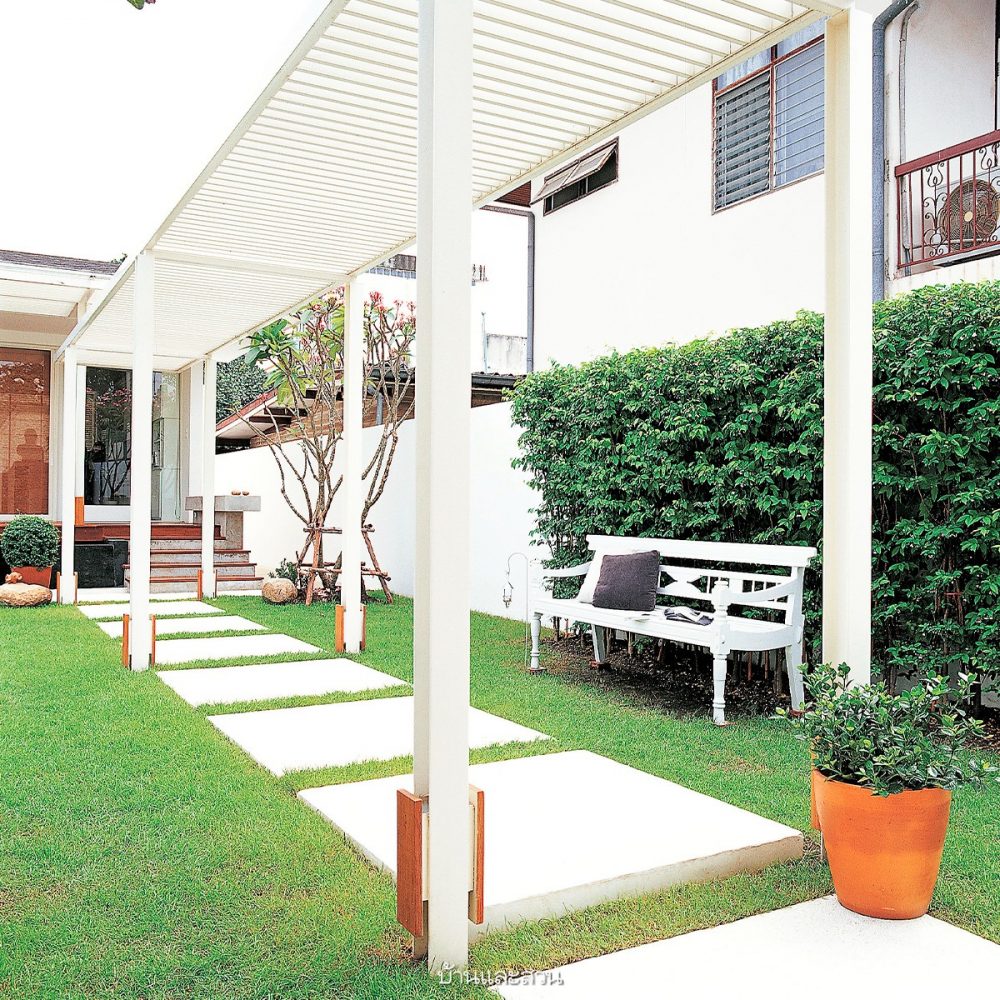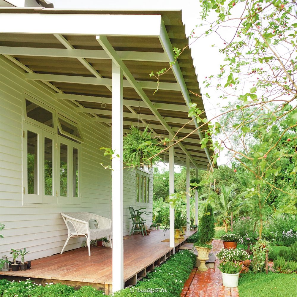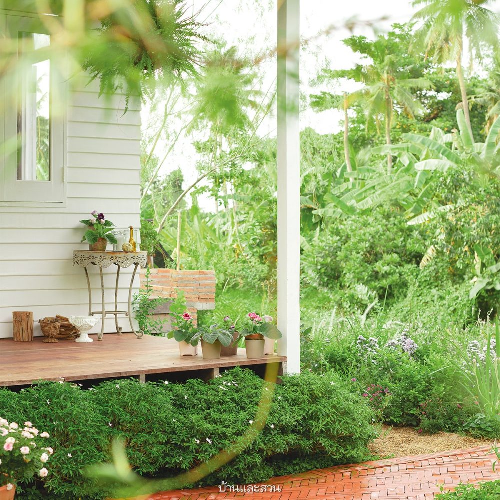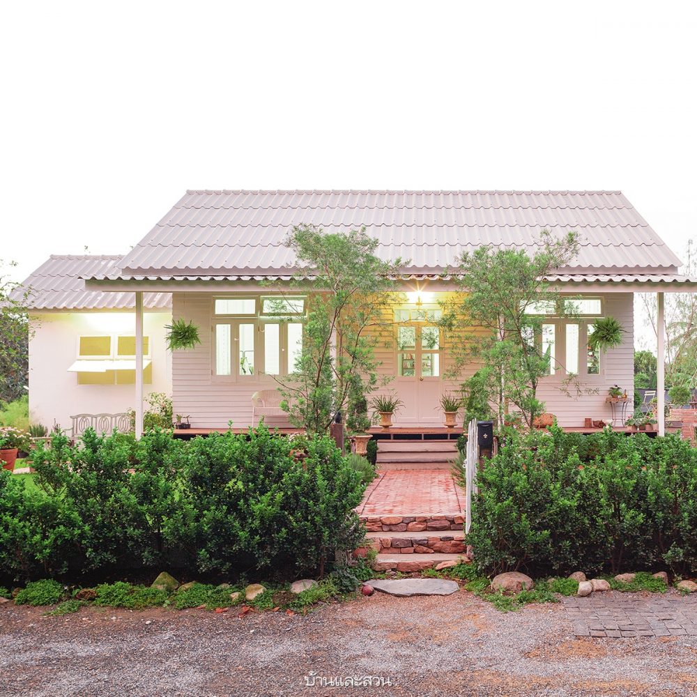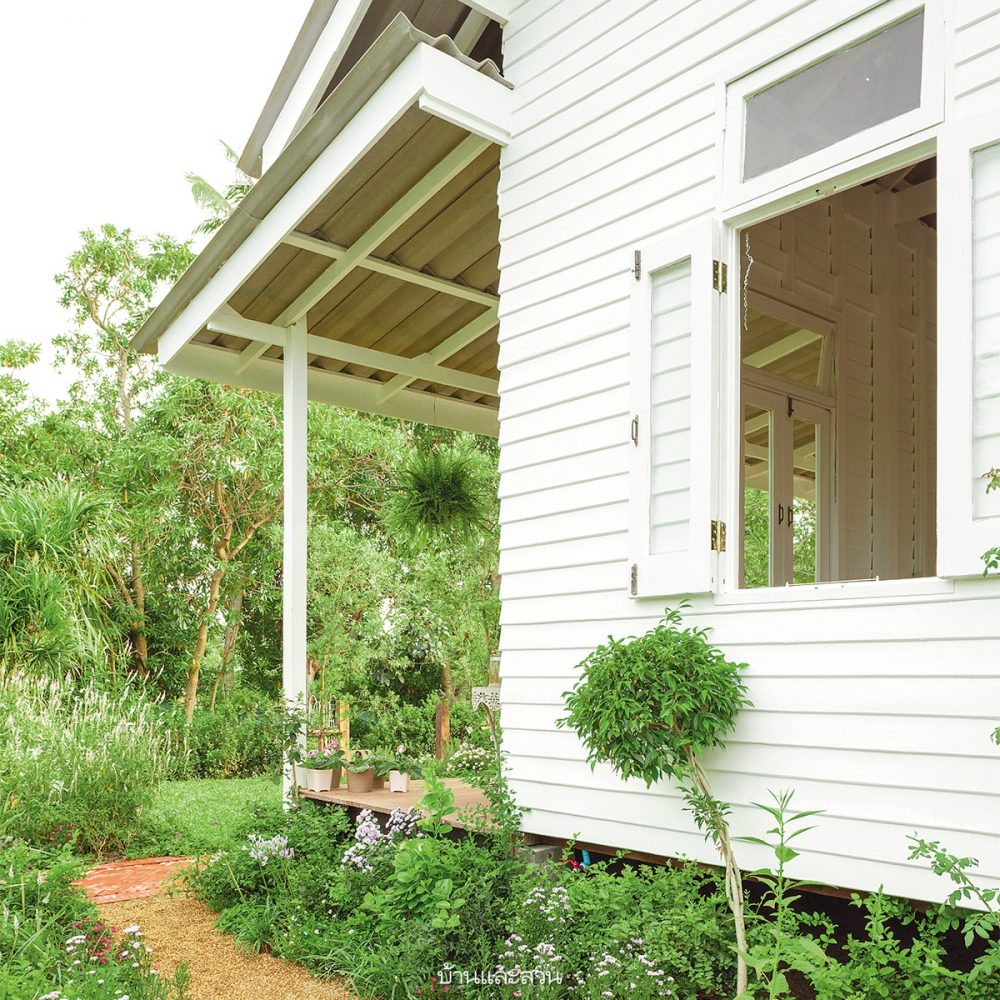 บ้านสีขาวโอบกอดด้วยสวนเขียว