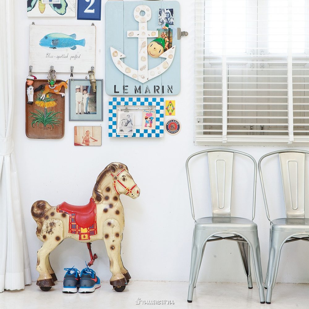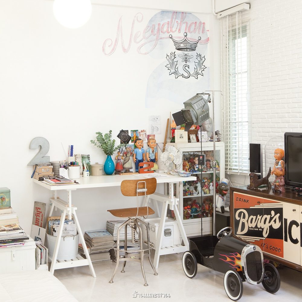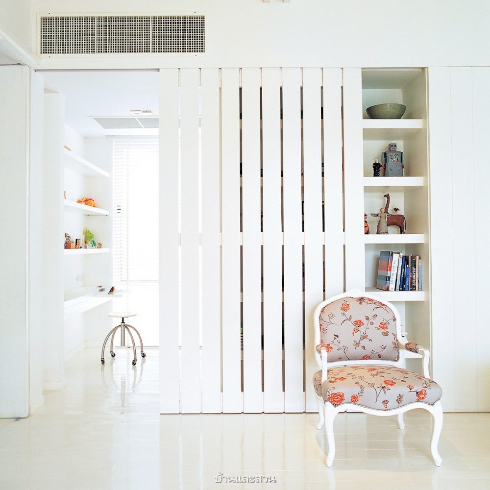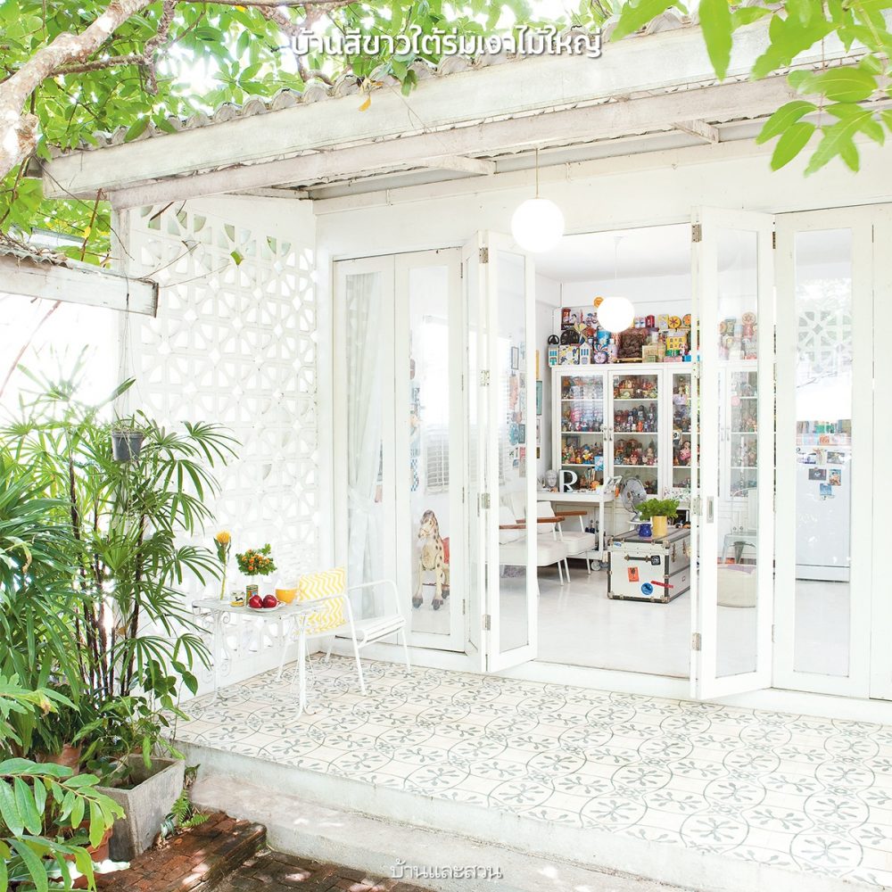 บ้านสีขาว ที่ออกแบบไว้อย่างเรียบง่ายเป็นรูปทรงสี่เหลี่ยม หน้าบ้านเปิดเป็นพื้นเฉลียงยาว กรุกระเบื้องลายโบราณ เข้ากับนิสัยคนไทยที่ชอบนั่งเล่นรับลมหน้าบ้าน ต้นไม้ใหญ่แผ่กิ่งก้านสาขาให้ร่มเงาแก่บ้านหลังนี้ ภายในแต่งเติมสีสันความสนุกด้วยตุ๊กตาของเล่นไขลานสีสันสดใส ซึ่งเป็นของสะสมสุดรักของเจ้าของบ้าน และเป็นสาเหตุให้ทั้งบ้านเลือกใช้สีขาวเป็นหลัก เพื่อให้บรรดาของเล่นสีสดยิ่งดูน่าสนใจ >> อ่านต่อ