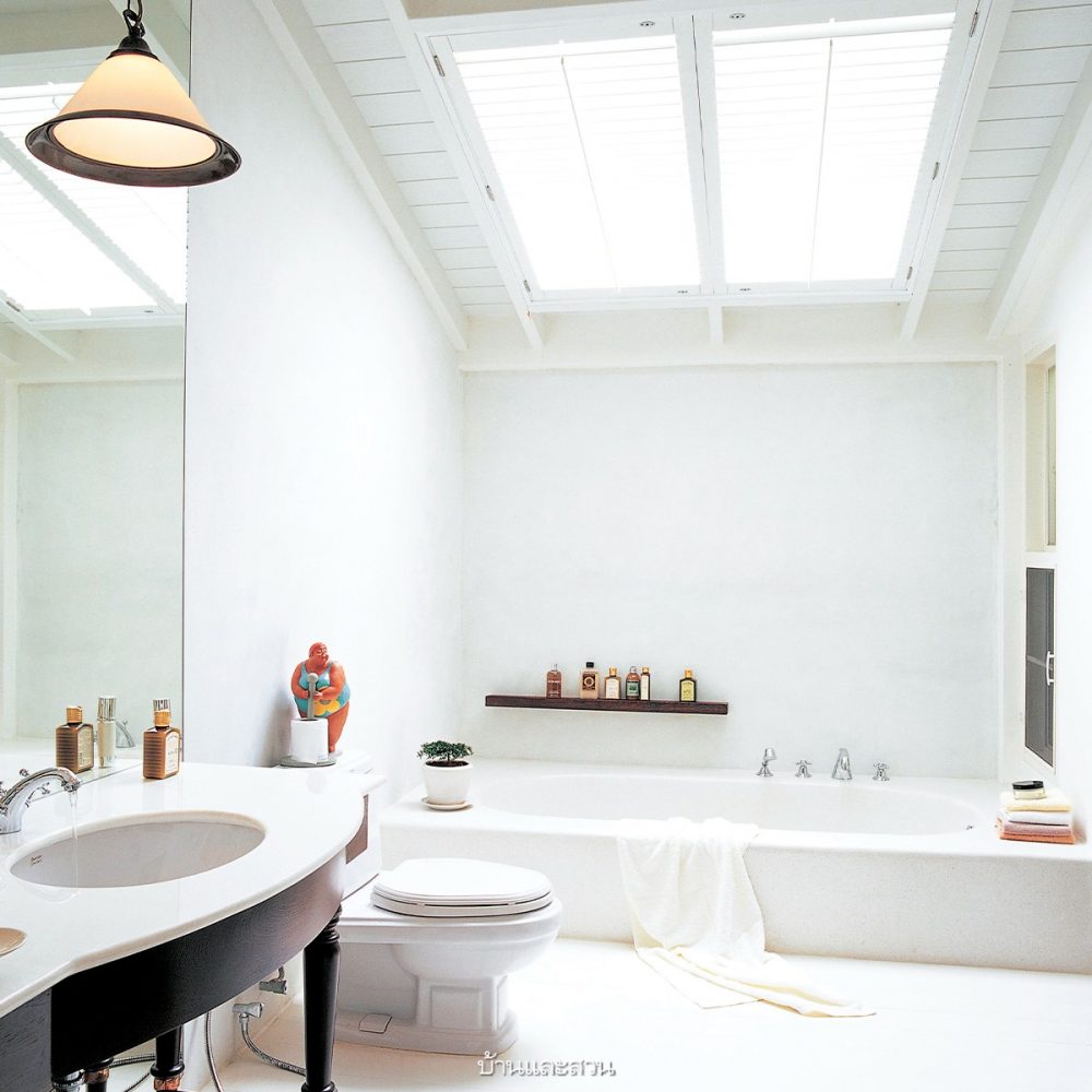 บ้านสีขาว ที่สร้างเป็นบ้านชั้นเดียวหลังนี้มีอายุกว่า 20 ปีแล้ว แต่ยังคงมีสภาพที่สมบูรณ์และสวยงามอยู่ เจ้าของบ้านตั้งใจอยากสร้างบ้านที่มีความเป็นหนึ่งเดียวกับธรรมชาติ โดยออกแบบให้มีช่องแสงในหลายจุด ทั้งประตูหน้าต่าง รวมไปถึงหลังคาที่เป็นแบบโปร่งใส เพื่อเปิดรับแสงจากธรรมชาติตลอดทั้งวัน บ้านจึงดูสว่างไม่อึดอัด และสิ่งสำคัญที่ทำให้บ้านมีบรรยากาศสดชื่นก็คือสวนสวยที่รายล้อมอยู่รอบบ้านซึ่งจัดเป็นสวนอังกฤษ เพื่อให้เจ้าของได้ระลึกถึงความผูกพันถึงเมื่อครั้งที่เคยเรียนที่อังกฤษนั่นเอง >> อ่านต่อ