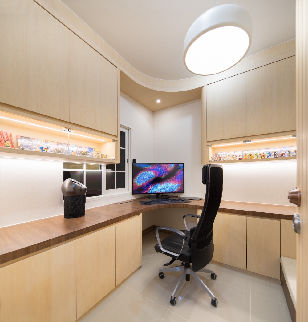 อีกหนึ่งโจทย์ที่ทางคุณเอ้ได้ให้แก่ผู้ออกแบบคือต้องการที่เก็บของเยอะๆ ผลลัพธ์จึงออกมาเป็นผนังซ่อนตู้ที่กระจายอยู่ทั่วทุกพื้นที่ ในรูปแบบของตู้เก็บของ ชั้นลอย ลิ้นชักเก็บของใต้บันได หรือแม้กระทั่งใต้เตียงนอน เรียกได้ว่าใช้พื้นที่ทุกตารางเมตรได้อย่างคุ้มค่าสุดๆ แถมมีความเป็นระเบียบเรียบร้อย ล้อไปกับมู้ดแอนด์โทนโดยรวมของบ้านที่เน้นสไตล์มินิมัลแบบที่คุณเอ้ชอบ เสริมด้วยการกรุไม้วีเนียร์โทนสีอ่อนให้ความรู้สึกอบอุ่น สบายตา![]()