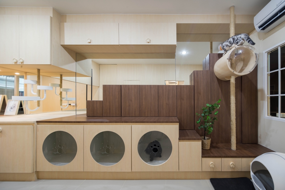 นับเป็นการรีโนเวตตกแต่งเพื่อส่งเสริมการอยู่ร่วมกันระหว่างคนกับสัตว์เลี้ยงได้อย่างกลมกลืน แม้ว่าพื้นที่ของสัตว์เลี้ยงจะเป็นพื้นที่ส่วนใหญ่ของบ้านก็ตาม แต่หากความสุขของเราคือการเห็นเจ้านายมีความสุข และการได้ใช้เวลาร่วมกัน ก็เชื่อเหลือเกินว่าเหล่าทาสแมวคงยินดีพลีพื้นที่ให้พวกเขาด้วยความเต็มใจอย่างไม่ต้องสงสัย