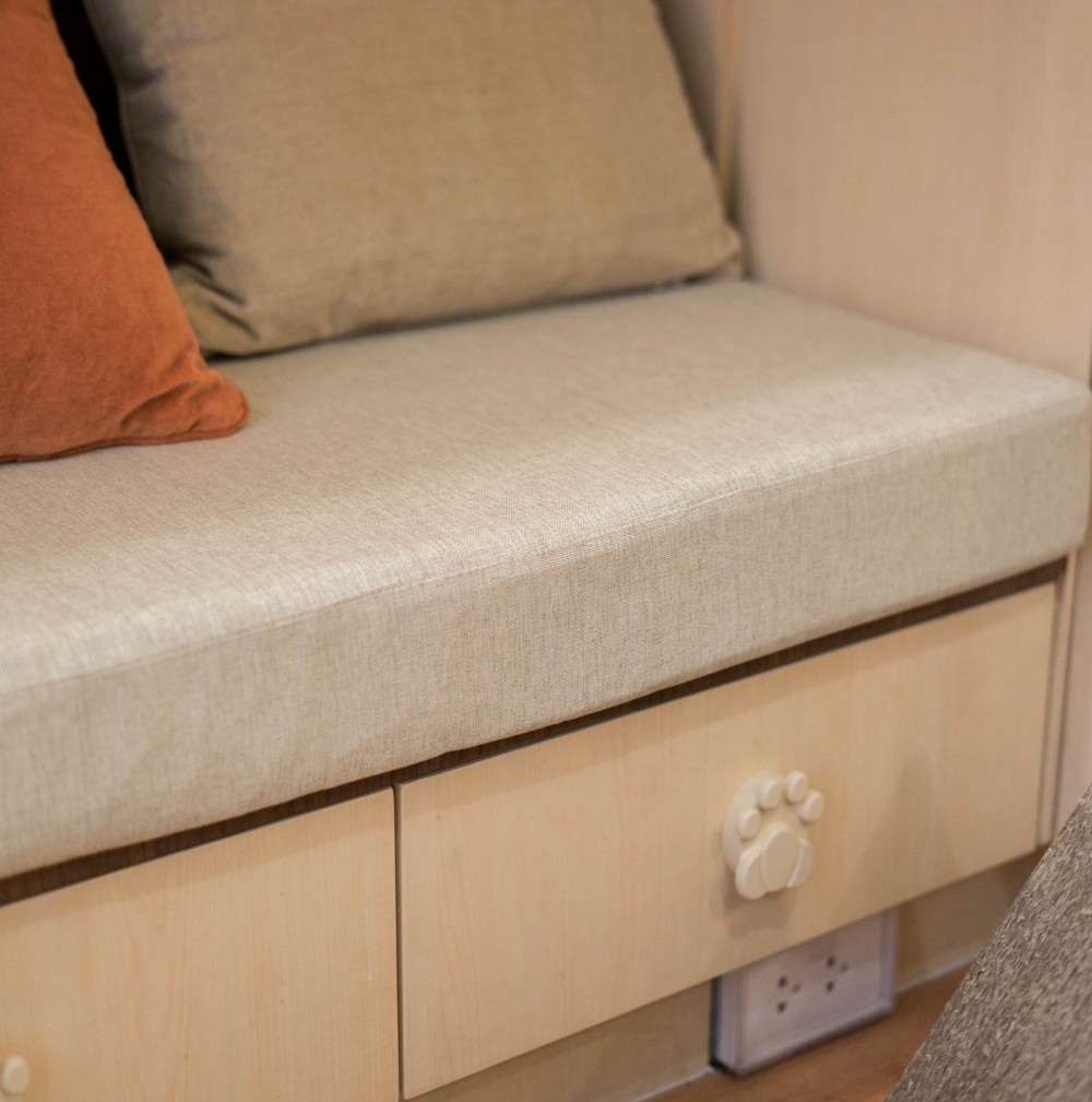 ช่องของแมว แบ่งพื้นที่ใต้ที่นั่งเป็นช่องสำหรับใช้กักตัวแมวที่เพิ่งซื้อมาใหม่หรือใช้สำหรับเวลาแมวมีอาการป่วยแล้วต้องการแยกพื้นที่เพื่อดูอาการ ในช่วงเวลาปกติใช้สำหรับแยกแมวเพศผู้และเมียออกจากกันเพื่อป้องกันการสืบพันธุ์ แม้ว่าจะอยู่ในช่องแต่ยังสามารถมองเห็นแมวได้ตลอดเวลาด้วยช่องเปิดอะคริลิกใสพร้อมรู้ระบายอากาศ