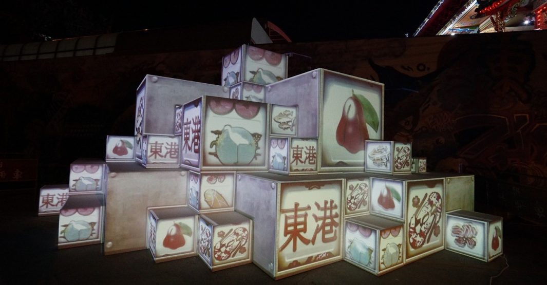 การออกแบบแสงสว่าง การแสดงการทำแผนที่ procection ออกแบบและควบคุมโดยแผนก LIGHT ARTWORKS ของ Rooster Lighting โดยใช้ลักษณะและองค์ประกอบทางวัฒนธรรมของตงกัง เพื่อสร้างแรงบันดาลใจการติดตั้งของเราในเทศกาลโคมไฟไต้หวันปี 2019 ตามปริมาณแสงที่มีอยู่โดยรอบในตำแหน่งของการติดตั้ง เราใช้โปรเจ็กเตอร์ขนาด 2 x 5000Lm พร้อมระบบการฉายภาพแบบกำหนดเอง ในระบบเดียวกัน ทั้งยังได้เพิ่มฟังก์ชันอินเทอร์แอคทีฟของกล้องในบู๊ธภาพถ่ายเพื่ออัปโหลดภาพถ่ายของผู้มาเยี่ยมชมการแสดงแสงสี ว่ากันว่าวิถีชีวิตบนเมืองตงกังมีความเกี่ยวข้องอย่างใกล้ชิดกับทะเล ดังนั้นในบริเวณโดยรอบของการติดตั้ง เราจึงนำภาพพิเศษและโคมไฟที่ได้รับแรงบันดาลใจจากทะเลมาไว้ด้วยกันการแสดงแผนที่ฉายภาพที่ได้รับแรงบันดาลใจจากองค์ประกอบท้องถิ่นของตงกัง บนกล่องไฟในช่วงเทศกาลโคมไฟไต้หวันปี 2019 ที่ผิงตง เรามีการทำงานร่วมกันแบบมีส่วนร่วม ซึ่งช่วยให้ผู้ชมสามารถออกจากช่วงเวลาพิเศษในระหว่างการเยี่ยมชมได้ Yanping Old Street เต็มไปด้วยร่องรอยของเวลาเป็นแก่นแท้ของย่านแสงของเมือง