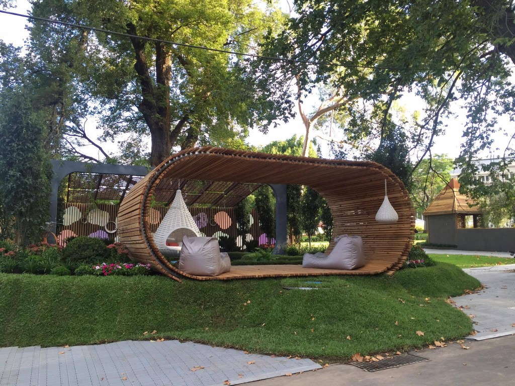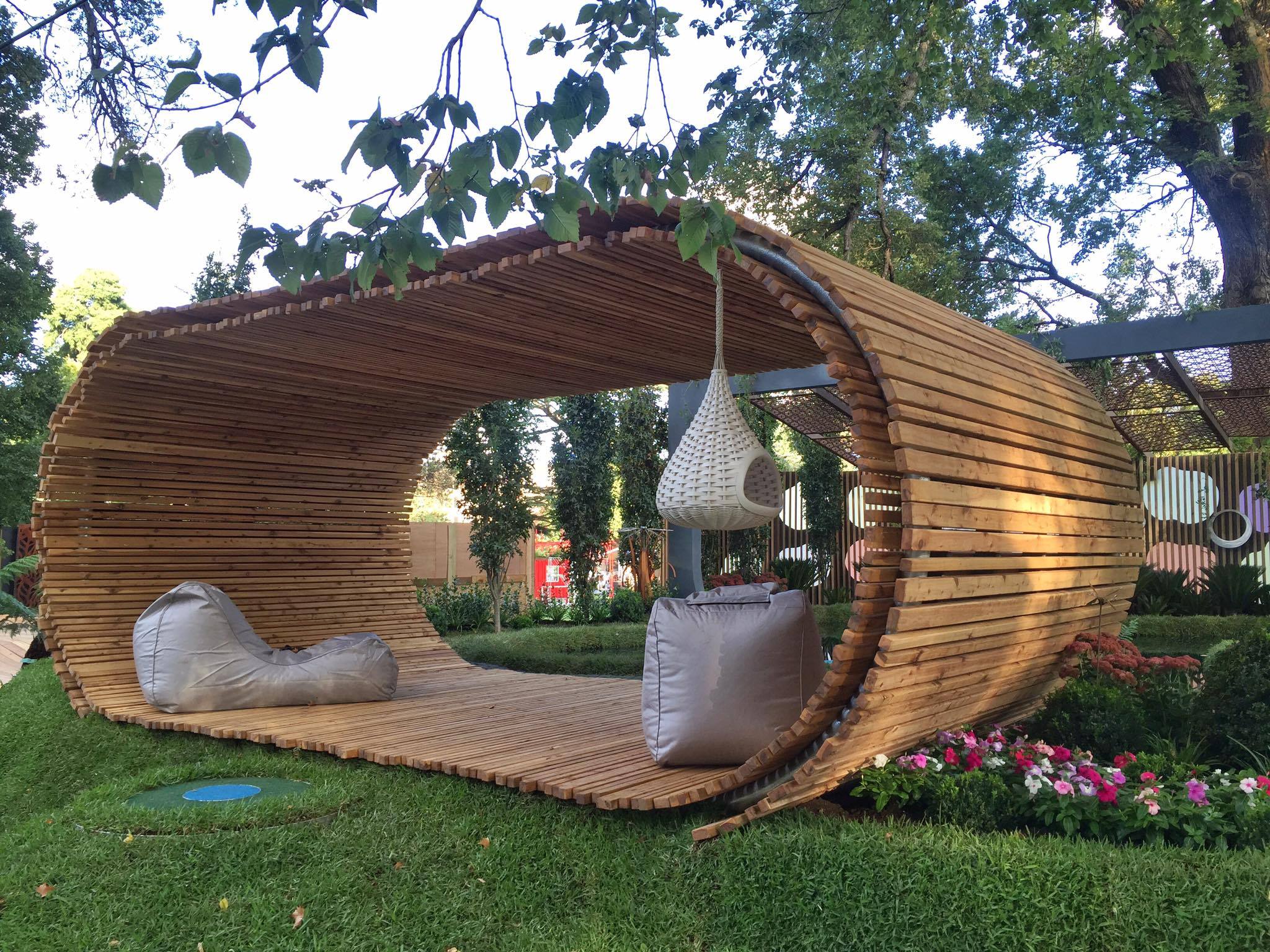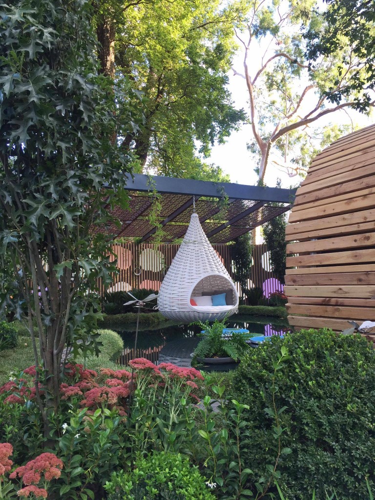 4. อีกหนึ่งสวนโชว์จากเมลล์เบิร์นที่หลายคนให้ความสนใจต้องสวนนี้ Find your Balance for Beyond Blue by Christian Jenkins เจ้าของรางวัลเหรียญทองแดงความน่ารักอยู่ที่โครงสร้างที่ดูเหมือนศาลาไม้ทรงรี ดูดีทั้งโครงสร้างและรายละเอียดของไม้ ประกอบการสร้างจุดนำสายตาภายในด้วยชิงช้ารูปหยดน้ำสีขาวที่ดูราวรังนกขนาดใหญ่ที่คุณสามารถเข้าไปนั่งเล่นได้ เชื่อมโยงพื้นที่ด้วยบ่อน้ำขนาดกะทัดรัด และการจัดองค์ประกอบจากพรรณไม้น้อยใหญ่และมุมน่านั่งยิ่งทำให้ยากที่จะเดินละสายตาไปได้