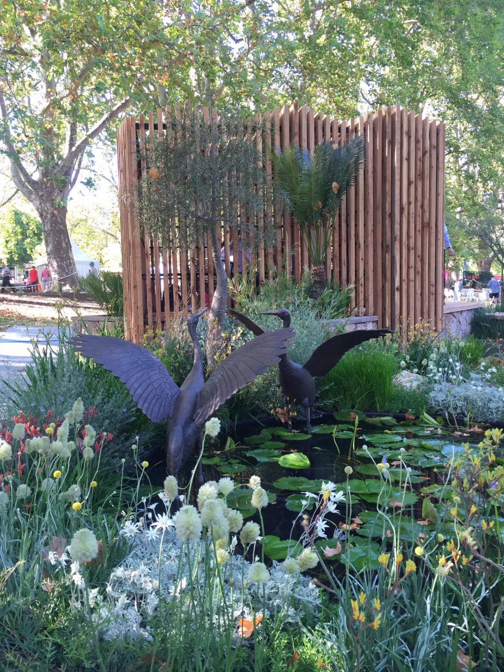 1. สวนโชว์เมลล์เบิร์นสวนแรกที่ทำเอาเราทึ่งก็คือสวน Reflection by Ian Barker Gardens สวนเจ้าของรางวัลเหรียญทอง ที่สนับสนุนโดยสื่อใหญ่อย่าง Australian House & Garden ความสมบูรณ์แบบอยู่ที่การจัดสวนที่ครบครันทั้งส่วนนั่งเล่น โครงสร้างไม้ บรรยากาศจากบ่อน้ำที่ล้อมสวนเอาไว้ส่วนหนึ่ง ร่วมด้วยการแมทช์ชิ่งพรรณไม้ทั้งแบบไม้คลุมดิน ไม้ดอก และไม้ฟอร์มสวยอารมณ์วัชพืชได้อย่างลงตัว ที่สำคัญรายละเอียดสร้างความมีชีวิตชีวาอย่างเป็ดที่ว่ายอยู่รอบๆบ่อน้ำก็ยิ่งสร้างบรรยากาศให้สวนนี้ชนะใจผู้พบเห็นอย่างลงตัว