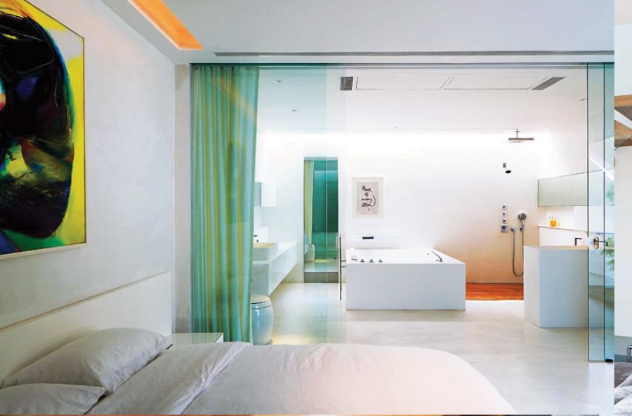 “เนื่องจากผมชอบสะสมภาพเขียน คอนเซ็ปต์แรกของบ้านผมคือ สร้างห้องให้ภาพอยู่ คือ คิดถึงภาพที่มีก่อนแล้วค่อยออกแบบห้อง สไตล์ภาพที่ผมชอบคือ Surrealism (ศิลปะแบบเหนือจริง) และ Expressionism (ศิลปะแบบสำแดงพลังอารมณ์) ผมเชื่อว่าการชมงานศิลปะไม่จำเป็นต้องเข้าใจทุกอย่าง ขอแค่เพียงมีแรงกระทบทางใจเป็นพอ” (ยิ้ม)
