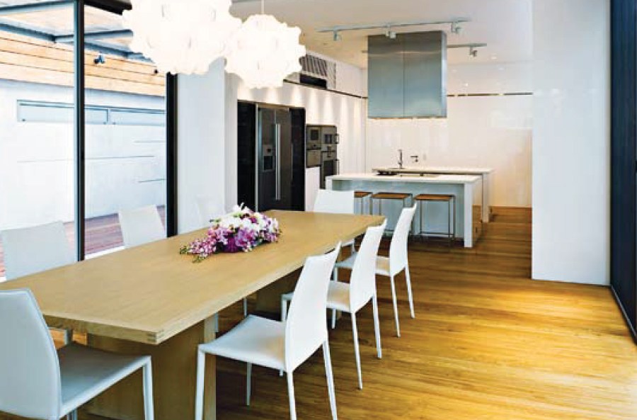 “คุณแม่ท่านอยากมองเห็นสมาชิกในบ้านว่าทำ อะไรอยู่ตรงไหนกันบ้าง ส่วนนี้จึงออกแบบให้มองเห็นความเป็นไปทั้งหมดในบ้าน รวมทั้งยังใช้เป็นที่ชุมนุมของทุกคนในครอบครัวซึ่งจะมานั่งเล่น รับประทานอาหาร หรือดูโทรทัศน์ด้วยกันครับ”
