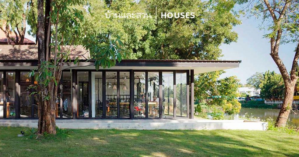 หากมองจากทางเข้าซึ่งเป็นถนนใหญ่ เราอาจคิดว่าตัวอาคารนั้นทึบตัน แต่ความจริงแล้วสิ่งนั้นเป็นเพียงอดีต คุณกิ๊ฟตัดสินใจทุบผนังและเพดานเดิมออกทั้งหมด พร้อมจัดวางแปลนใหม่ให้มีลักษณะเป็นรูปตัวยู (U) โดยไม่ให้มีอาคารปิดกั้นบริเวณที่ติดริมแม่น้ำปิง ลมจากแม่น้ำจึงพัดเข้ามาไหลเวียนรอบตัวอาคารทั้งสามหลังตลอดทั้งวัน อีกทั้งรอบบริเวณยังเต็มไปด้วยต้นไม้ใบหญ้า ช่วยสร้างบรรยากาศร่มรื่นเย็นสบาย สามารถมานั่งพักผ่อนได้ในตอนกลางวัน