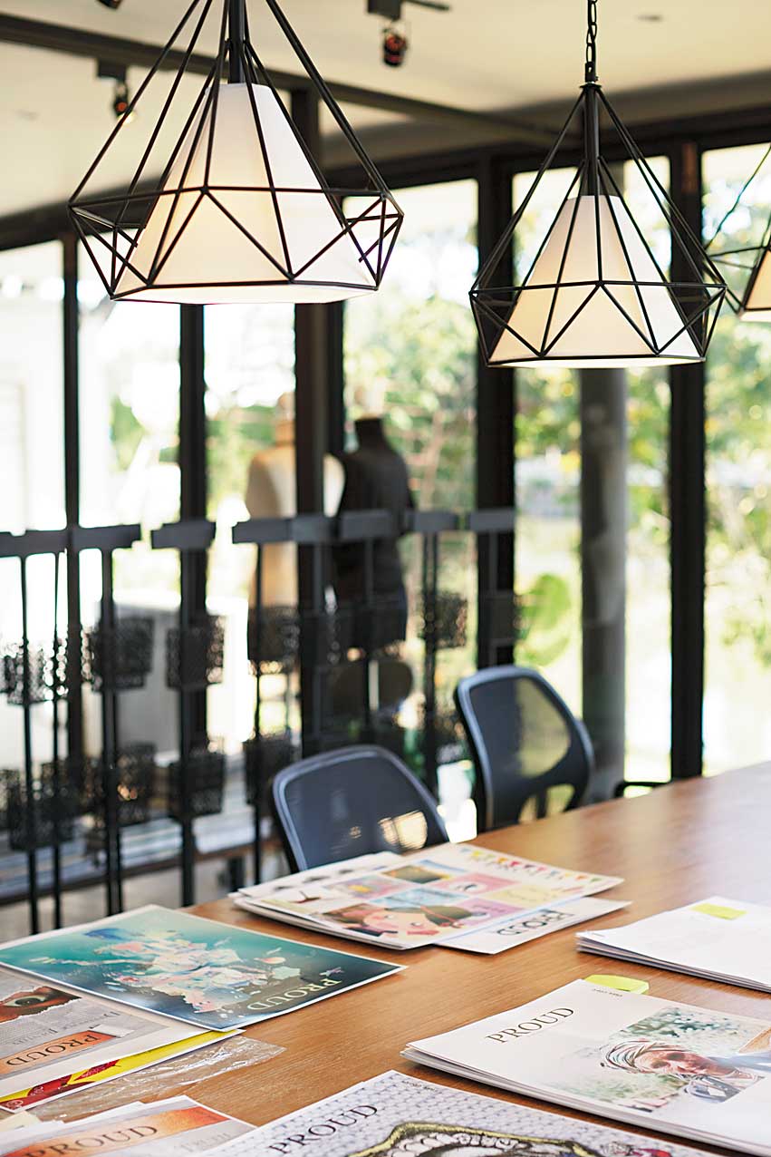 ด้านซ้ายของแกลเลอรี่เป็นออฟฟิศของนิตยสารพราวด์ ซึ่งดูแลโดยคุณกิ๊ฟและภรรยา คุณจ๊อยซ์ – สุภาณี ลือโฮ่ง ตกแต่งในรูปแบบทันสมัย ใช้ประตูกระจกที่สามารถเปิดกว้างได้กั้นแทนผนังปูน เพื่อเปิดรับแสงแดดและลมจากธรรมชาติได้เต็มที่ เลือกใช้เหล็กสีดำและไม้เป็นวัสดุหลัก ให้ความรู้สึกโปร่งสบาย นอกจานี้คุณกิ๊ฟและคุณจ๊อยซ์ยังเป็นผู้ออกแบบอุปกรณ์ที่ใช้ในออฟฟิศเองทั้งหมดด้วย