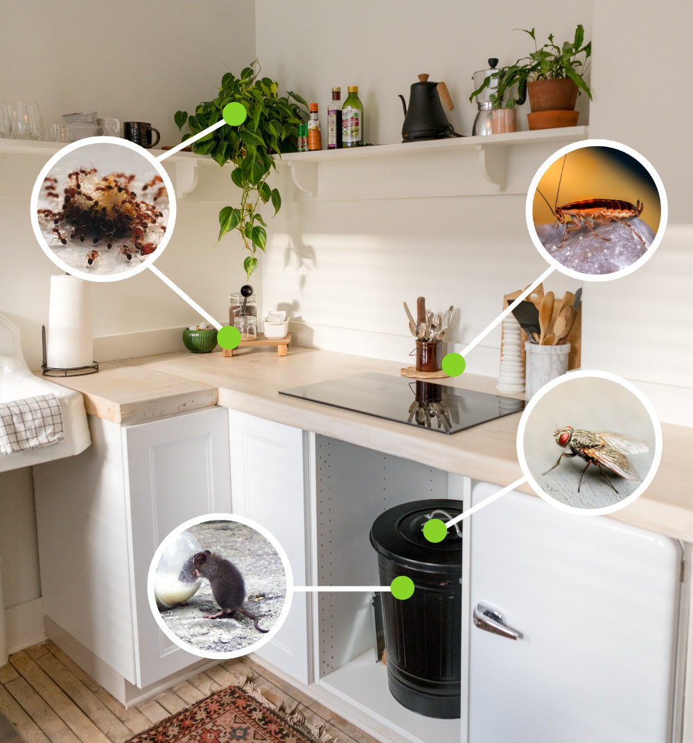 สิ่งแรกคือต้องหมั่นทำความสะอาด ตรวจเช็คความเรียบร้อยของพื้นที่ทิ้งขยะตามจุดต่าง ๆ ในบ้าน ไม่ว่าจะเป็นถังขยะในห้องครัว ท่อระบายน้ำในพื้นที่ซักล้าง เศษอาหารที่อาจจะตกหล่นอยู่ในพื้นที่การเตรียมอาหารในครัว และโต๊ะรับประทานอาหาร ให้สะอาดเป็นประจำ และเลือกใช้ผลิตภัณฑ์กำจัดแมลงและสัตว์รบกวน ที่มีประสิทธิภาพในการป้องกันและกำจัด