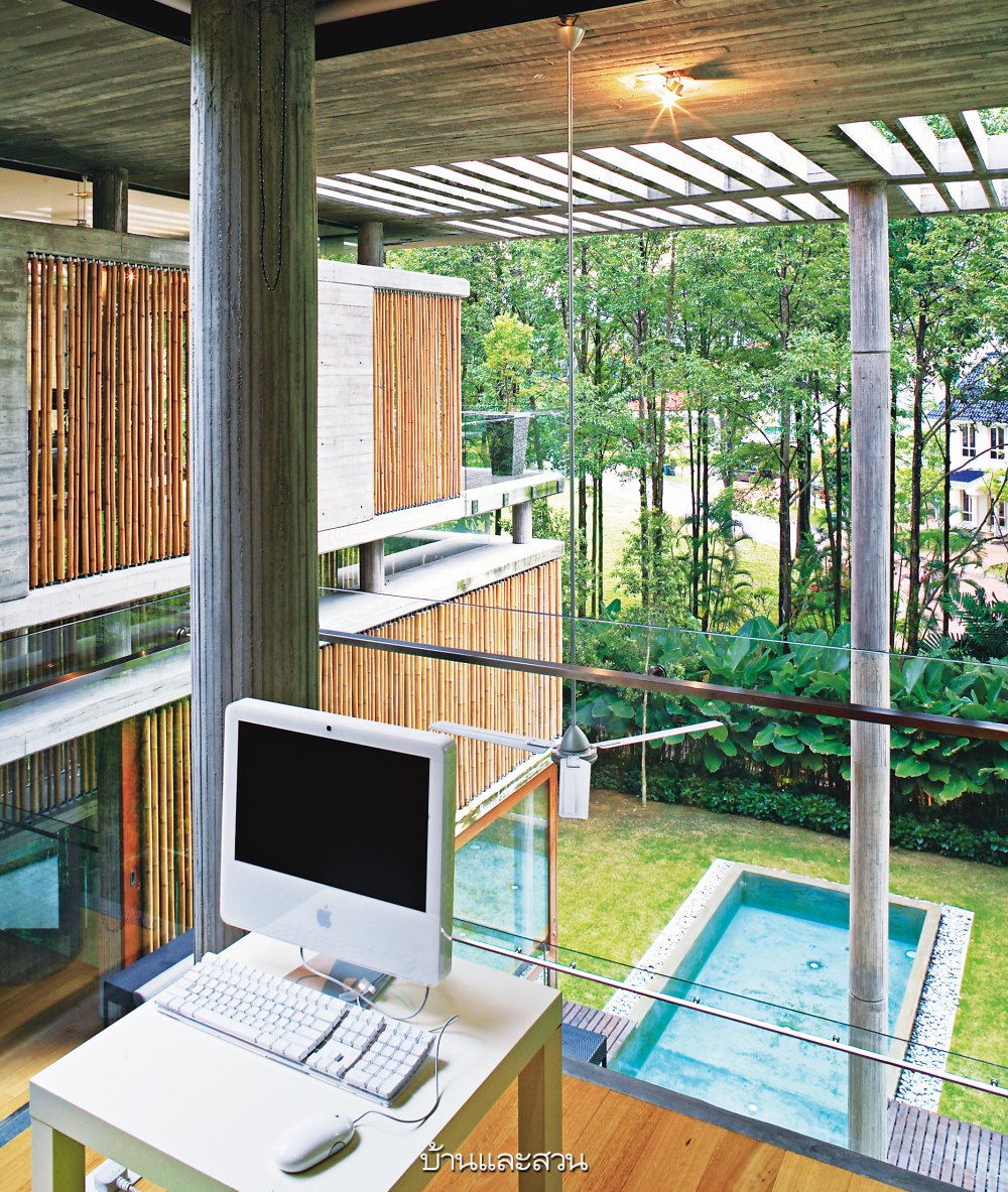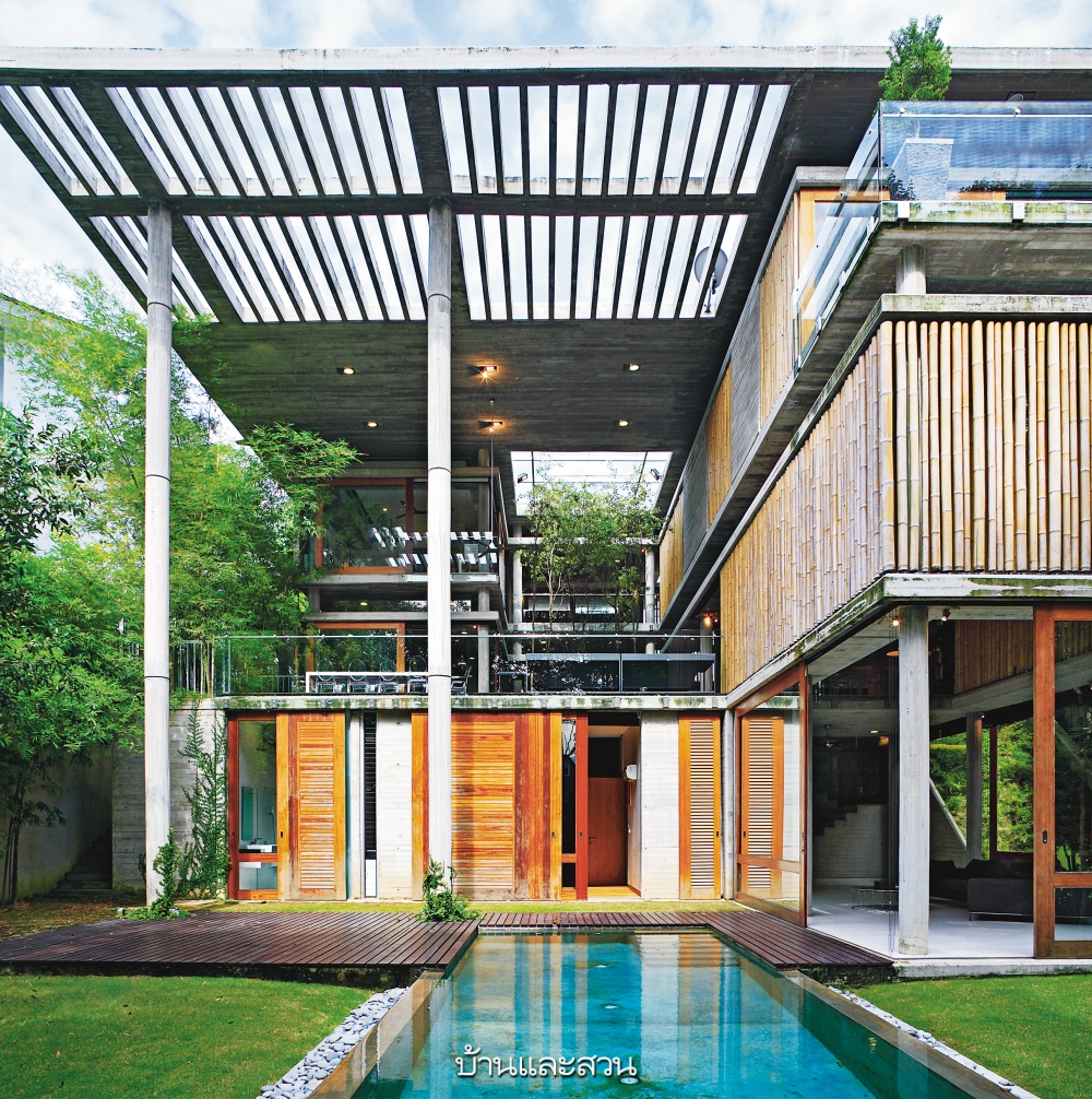 ภาพถ่ายของไม้ไผ่ที่นำมาทำเป็นระแนงแนวตั้งทั่วทั้งบ้านบวกกับตัวบ้านที่ทำจากคอนกรีตหล่อในที่ พื้นผิวเป็นลายไม้แบบ ซึ่งสถาปนิกผู้ออกแบบส่งมาให้ดูทางอีเมลนั้น ทำให้ผมรู้สึกว่าบ้านหลังนี้น่าอยู่ และต้องเดินทางมาให้เห็นกับตาตัวเองถึงรัฐสลังงอร์ ประเทศมาเลเซีย