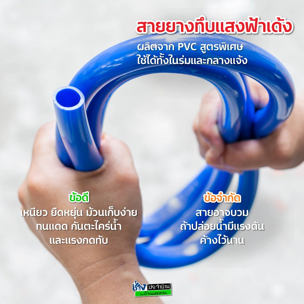 -สายยางทึบแสงฟ้าเด้ง : เนื้อนิ่มเด้ง บิด พับ หัก งอได้ แต่สามารถคืนกลับรูปทรงเดิมได้ง่ายเช่นกัน