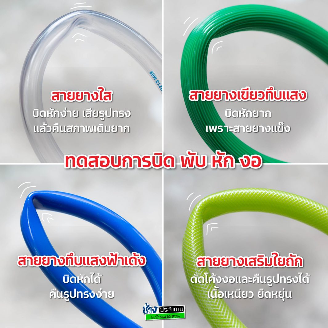 -สายยางใส : บิด พับ หัก งอง่าย เมื่อเสียรูปทรงแล้ว กลับคืนสภาพเดิมยาก