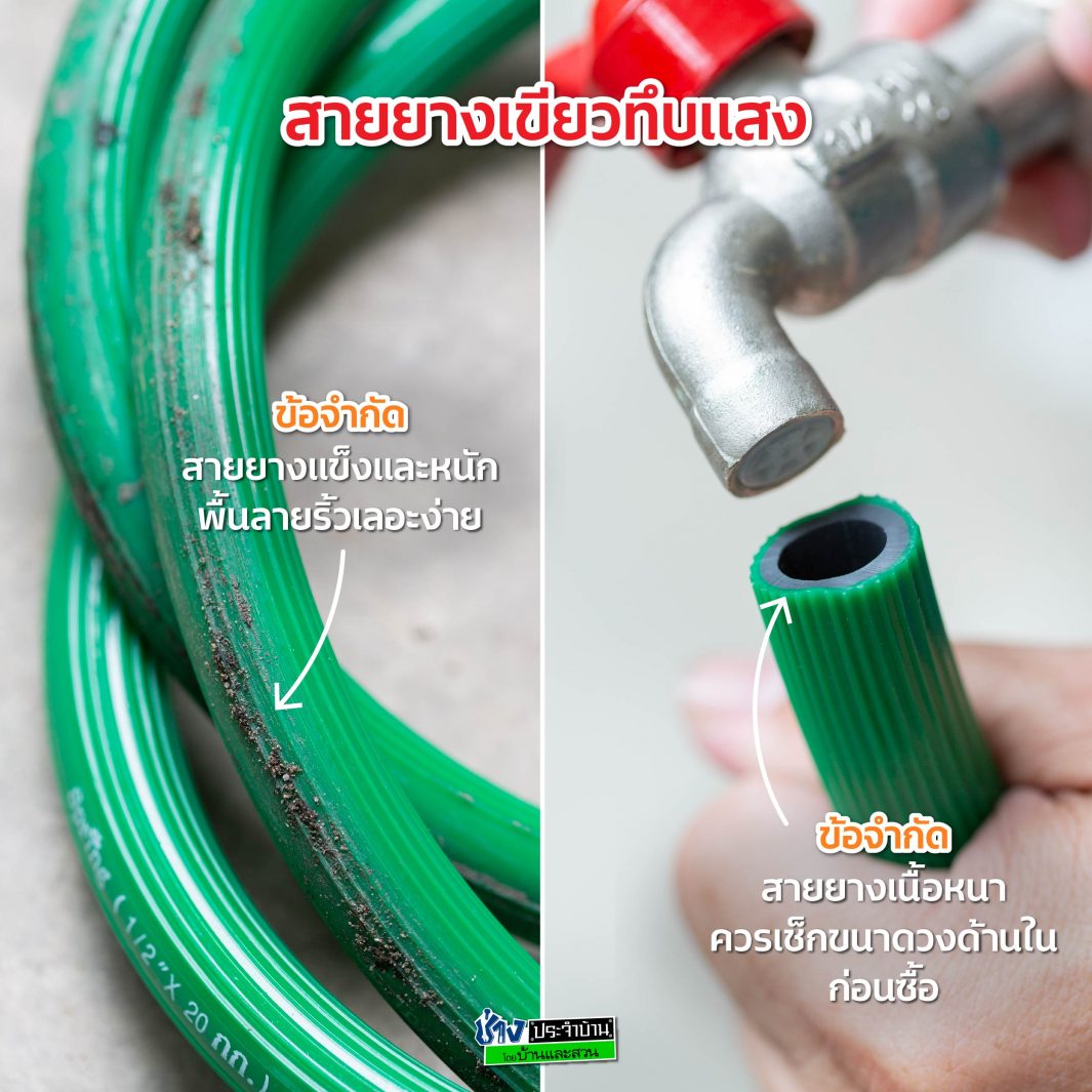 สายยาง เกิดตะไคร่น้ำ บิดงอคอหัก ม้วนเก็บยาก อาจเพราะเลือกใช้สายยางไม่ถูกประเภท บ้านและสวนรีวิว ชวนมารู้จักสายยาง 4 ประเภทที่มีคุณสมบัติต่างกัน มาดูกันว่าแบบไหนเหมาะกับการใช้งานอย่างไร แล้วสายยางชนิดพิเศษดีกว่าชนิดปกติตรงไหน