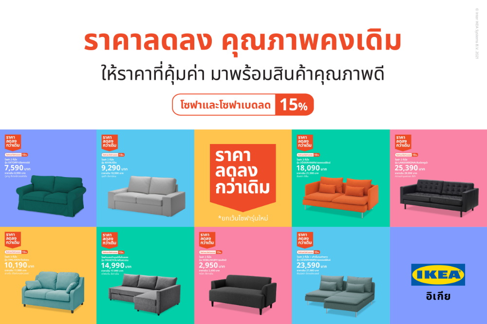 เก็บไอเดียที่นำมาฝากครบแล้ว ก็พร้อมออกตามหาโซฟาตัวโปรดเข้าบ้านกันได้เลย! และเพื่อให้ความต้องการของคุณครบจบในที่เดียว ใครอยู่ใกล้ IKEA สาขาไหนแวะไปช้อปกันได้เลย เพราะเขาปรับลดราคาสินค้ากว่า 200 รายการ ที่ครอบคลุมทุกฟังก์ชันการใช้งานในบ้าน พร้อมโซฟาและโซฟาเบดที่ปรับราคาลงถึง 15 % กว่า 20 ซีรีส์ รับประกันนานถึง 10 ปี การันตีเรื่องคุณภาพและอายุการใช้งานที่ยาวนานคุ้มค่า ให้คุณได้เลือกซื้อหาโซฟาตัวใหมเข้าบ้าน ไว้นั่งนุ่ม ๆ ดูซีรีส์กันแบบยิ่งยาว หรือจะนั่งทำงานแบบชิลๆ เรียกว่าสบายทั้งกายและเงินในบัญชี