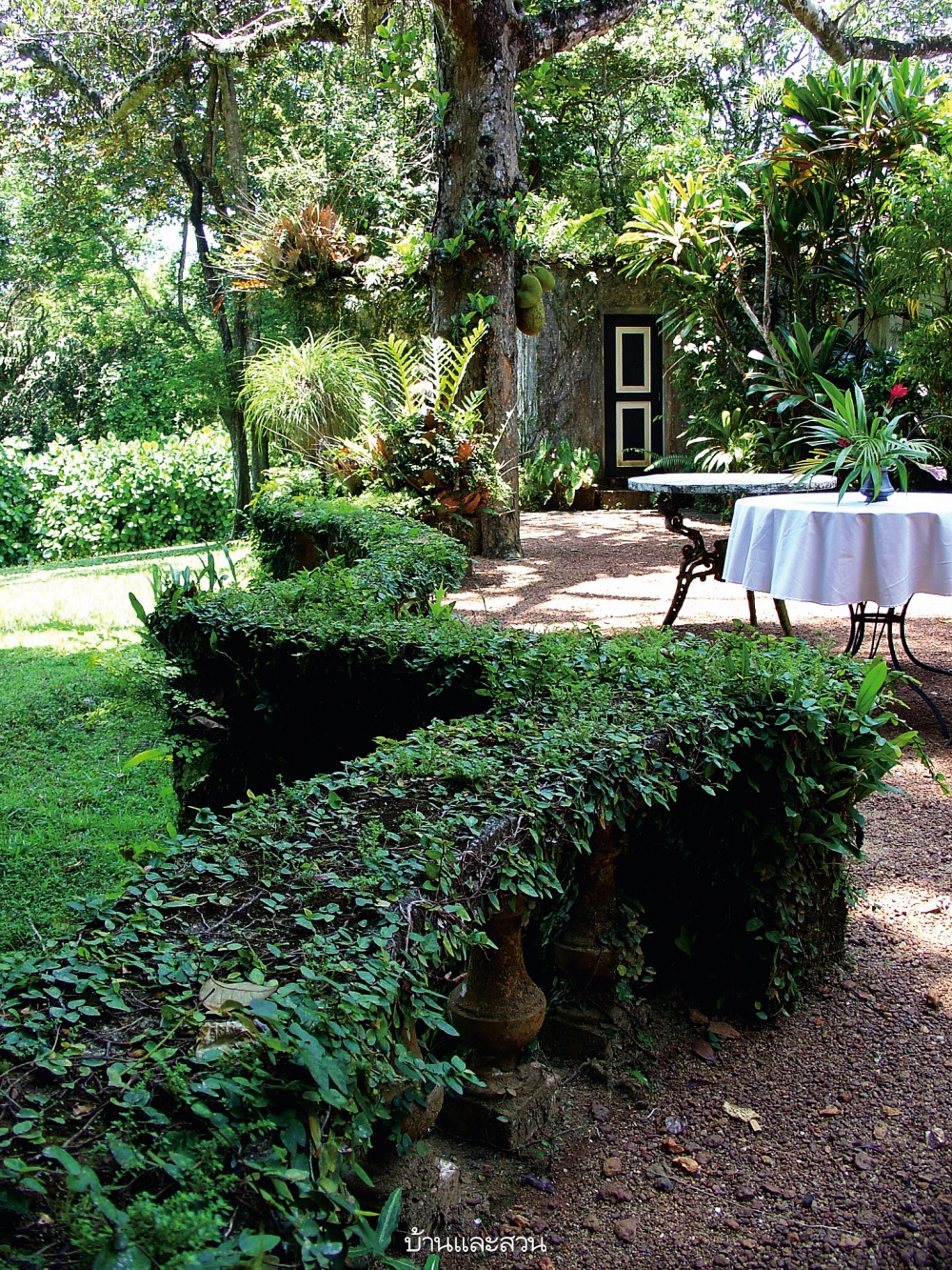 บ้านและสวนเดินทางไปประเทศศรีลังกา และมีโอกาสได้เยี่ยมชมบ้าน สวน และสถานที่สวยๆหลายต่อหลายแห่ง ที่หนึ่งที่เราประทับใจคือบ้านในสวนกว้างของสถาปนิกระดับปรมาจารย์ชาวศรีลังกาที่ชื่อ Geoffrey Bawa หลายท่านอาจเคยได้ยินชื่อเสียงและเห็นภาพผลงานของเขามาบ้างแล้ว ที่นี่ทำให้เราได้เรียนรู้เรื่องราวก่อนที่เขาจะกลายเป็นผู้ที่ทำให้สถาปัตยกรรมและการจัดสวนสไตล์บาหลีเป็นที่รู้จักไปทั่วโลก สวนเมืองร้อน