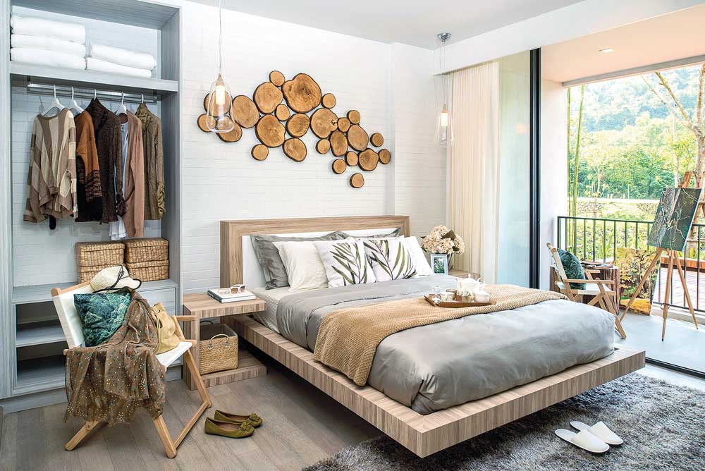 พื้นที่ที่ติดกับระเบียงซึ่งมองเห็นวิวทิวทัศน์สวยๆ ภายนอก ลองดึงบรรยากาศมาไว้ภายในห้องด้วยการกรุผนังกระจกใสเพื่อขยายภาพนั้นให้ชัดขึ้น แยกส่วนระหว่างภายในห้องกับริมระเบียงด้วยการปูพื้นให้แตกต่างกัน อาจเป็นไม้หรือกระเบื้องสีอ่อนจะช่วยให้ห้องดูกว้างขึ้น นอกจากนี้การดึงสีเขียวของธรรมชาติด้านนอกที่มีการไล่เฉดอ่อน - เข้มเข้ามาภายในห้องยังช่วยให้รู้สึกสบายตาขึ้นอีกด้วย