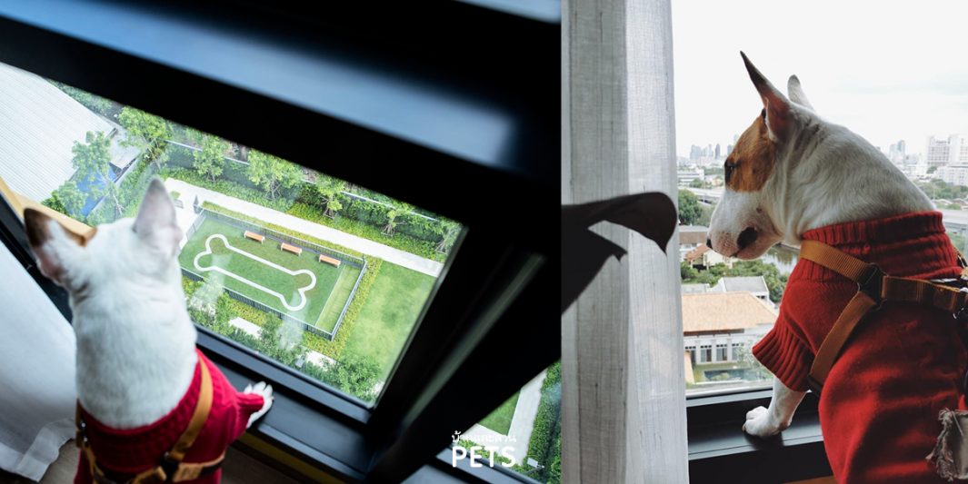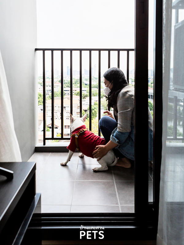 ห้องคอนโดของเมเจอร์ฯ ออกแบบให้บานกระจกกว้างเปิดให้เห็นวิว เป็นการช่วยสร้างความเพลิดเพลินให้สัตว์เลี้ยงด้วย