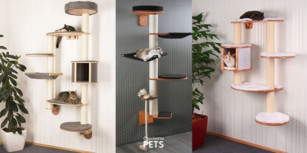 สำหรับแมวซึ่งธรรมชาติของแมวที่เลี้ยงในบ้านหรือคอนโดจะชอบพื้นที่ที่มีสเปซให้เขาขึ้นปีนป่ายในแนวดิ่ง ต้องการพื้นที่แนวสูงเพื่อขึ้นไป จะต้องมีระดับให้เขาขึ้นไต่ได้ปีนขึ้นไป ต้องมีพวกอุปกรณ์ให้ทำตามสัญชาตญานธรรมชาติ เช่น ที่ลับเล็บ อุโมงค์บ้าน กล่องแคบที่เข้าไปนอนได้ แมวจึงเลี้ยงในห้องในคอนโดได้ไม่ค่อยมีปัญหาเรื่องขนาดพื้นที่ ชอบวิวผ่านกระจกใส เห็นสิ่งแวดล้อมข้างนอก ซึ่งสำหรับห้องนั่งเล่นซึ่งเป็นพื้นที่สำหรับการพักผ่อนของคนในครอบครัว สำหรับคนรักแมวแล้วย่อมต้องการให้เจ้าเหมียวแสนซนมีพื้นที่สำหรับการผ่อนคลายและกระโดดโลดโผน ไอเดียการตกแต่งพื้นที่สำหรับการเล่นสนุกของเจ้าเหมียวอาจจะฟังดูเหมือนต้องใช้พื้นที่เยอะ ซึ่งจริงๆ แล้วเราสามารถออกแบบให้สวยงามและใช้พื้นที่น้อยได้ ด้วยการเลือกติดบันไดไม้ของเล่นสำหรับแมวกับผนัง ซึ่งคุณสามารถแบ่งพื้นที่ภายในห้องนั่งเล่นสำหรับการตกแต่งเพื่อเจ้าเหมียวได้ เรียกได้ว่าสุขทั้งคนทั้งแมวแบบนี้ ต้องลองนำไปปรับใช้กันนะคะ