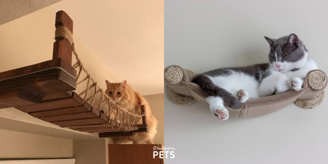 สะพานแมวนอกจากจะใช้สำหรับให้แมวไต่เล่นไปบนผนังตามมุมต่างๆ ของบ้านแล้ว ยังสามารถใช้เป็นเปลเอาไว้ให้แมวเหมียวได้แอบงีบกันแบบส่วนตัว