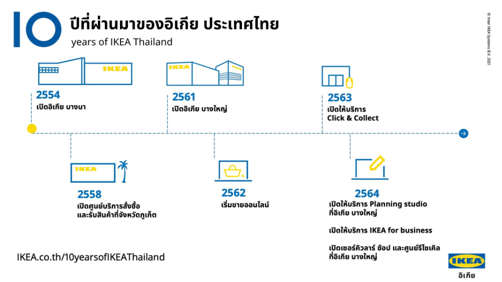 อิเกีย ฉลองครบ 10 ปี ในประเทศไทย สร้างแรงบันดาลใจและจัดสรรทุกพื้นที่ตอบสนองทุกรูปแบบการใช้ชีวิตที่ดียิ่งขึ้น พร้อมก้าวสู่ทศวรรษใหม่ ด้วย 5 กลยุทธ์หลัก ได้แก่ การออกแบบที่ใส่ใจทุกแง่มุม (Democratic Design) สินค้าราคาลดลงกว่าเดิม (Even Lower Price: ELP) ความยั่งยืน กลยุทธ์การตลาดระดับโลกที่เข้าใจความต้องการท้องถิ่น และการเจาะกลุ่มลูกค้า B2B ผ่าน IKEA For Business เพื่อสร้างการเติบโตอย่างยั่งยืนในประเทศไทย 10 ปี IKEA