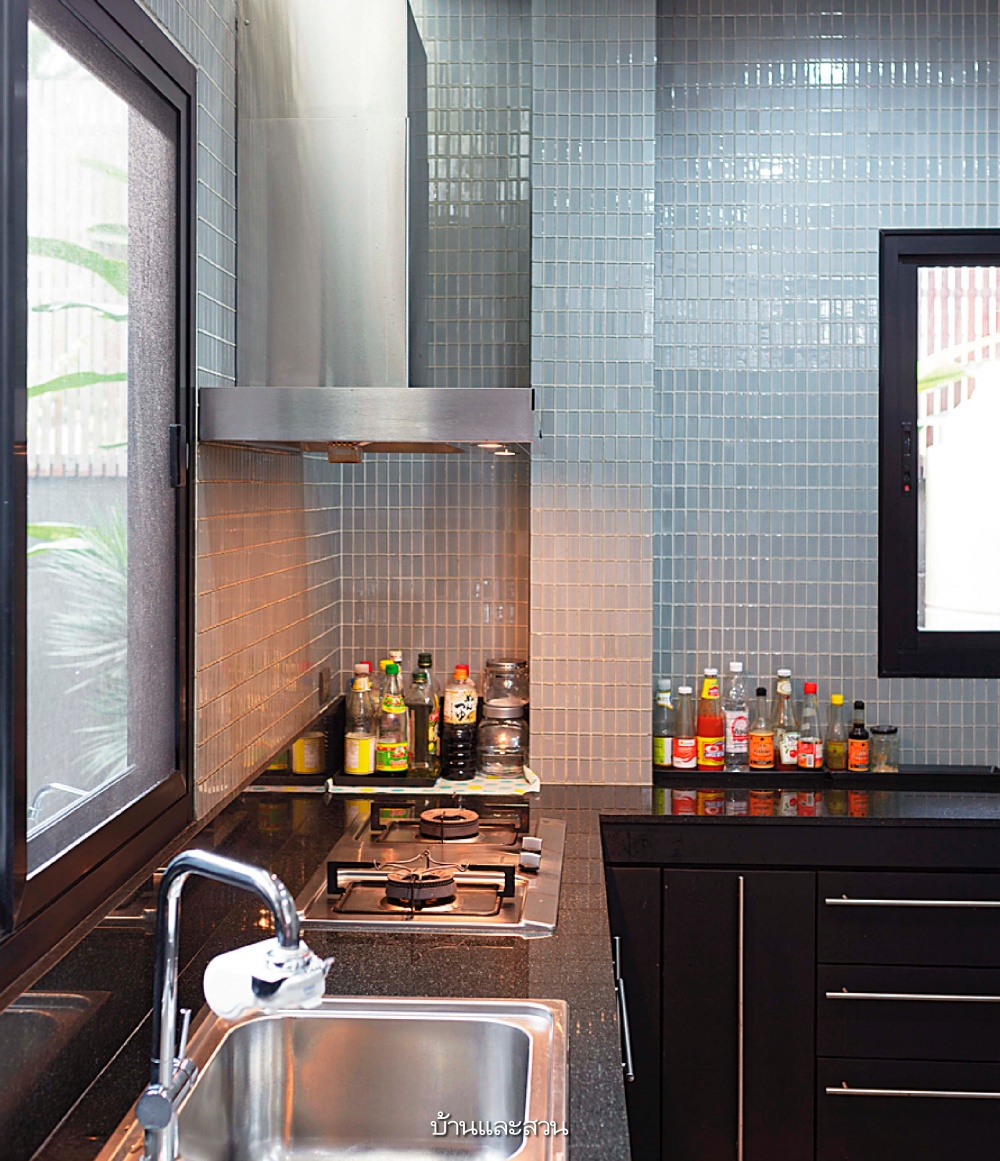 ต้นไม้ในพื้นที่ก็เป็นสิ่งที่เจ้าของบ้านพยายามเก็บรักษาไว้ให้มากที่สุดเพราะคุณพ่อคุณป้องปลูกและดูแลมาตั้งแต่ยังเป็นต้นกล้า เช่น ปาล์มน้ำมันขนุน และมะม่วง ช่วยให้บรรยากาศรอบบ้านดูร่มครึ้มสบายตา แม้คุณป้องจะทำงานเป็นผู้กำกับภาพยนตร์โฆษณาและเป็นเจ้าของ Production House ชื่อ Stripper Films ซึ่งต้องออกกองทำงานแทบทุกวัน แต่เขาก็ยังชอบปลูกต้นไม้และทำกิจกรรมต่างๆ ร่วมกับครอบครัว โดยเฉพาะการปลูกเฟินที่มีให้เห็นเกือบทุกมุมของบ้าน