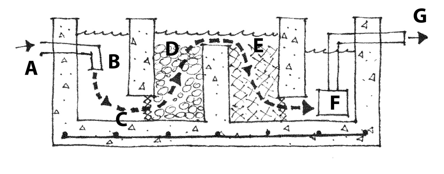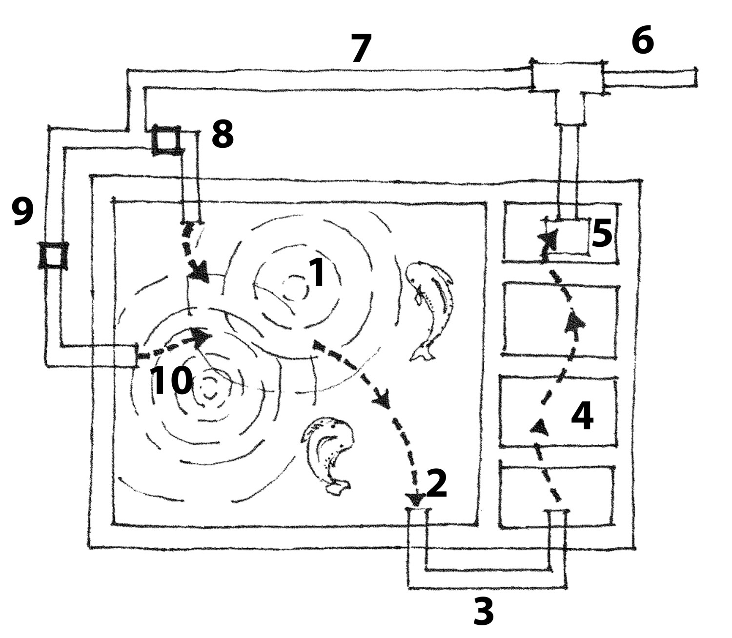 เนื่องจากปลาคาร์ปชอบอาศัยในน้ำที่สะอาดเป็นพิเศษจึงจำเป็นต้องมีบ่อกรอง ซึ่งควรมีขนาดประมาณหนึ่งในสามของบ่อปลา มีความลึกกว่าบ่อ เพื่อให้น้ำไหลไปบ่อกรองได้ง่าย ซึ่งตำแหน่งบ่อกรองสามารถซ่อนใต้พื้นทางเดิน ศาลาหรือหลังน้ำตกก็ได้นอกจากนี้ควรทำความสะอาดบ่อทุกเดือน