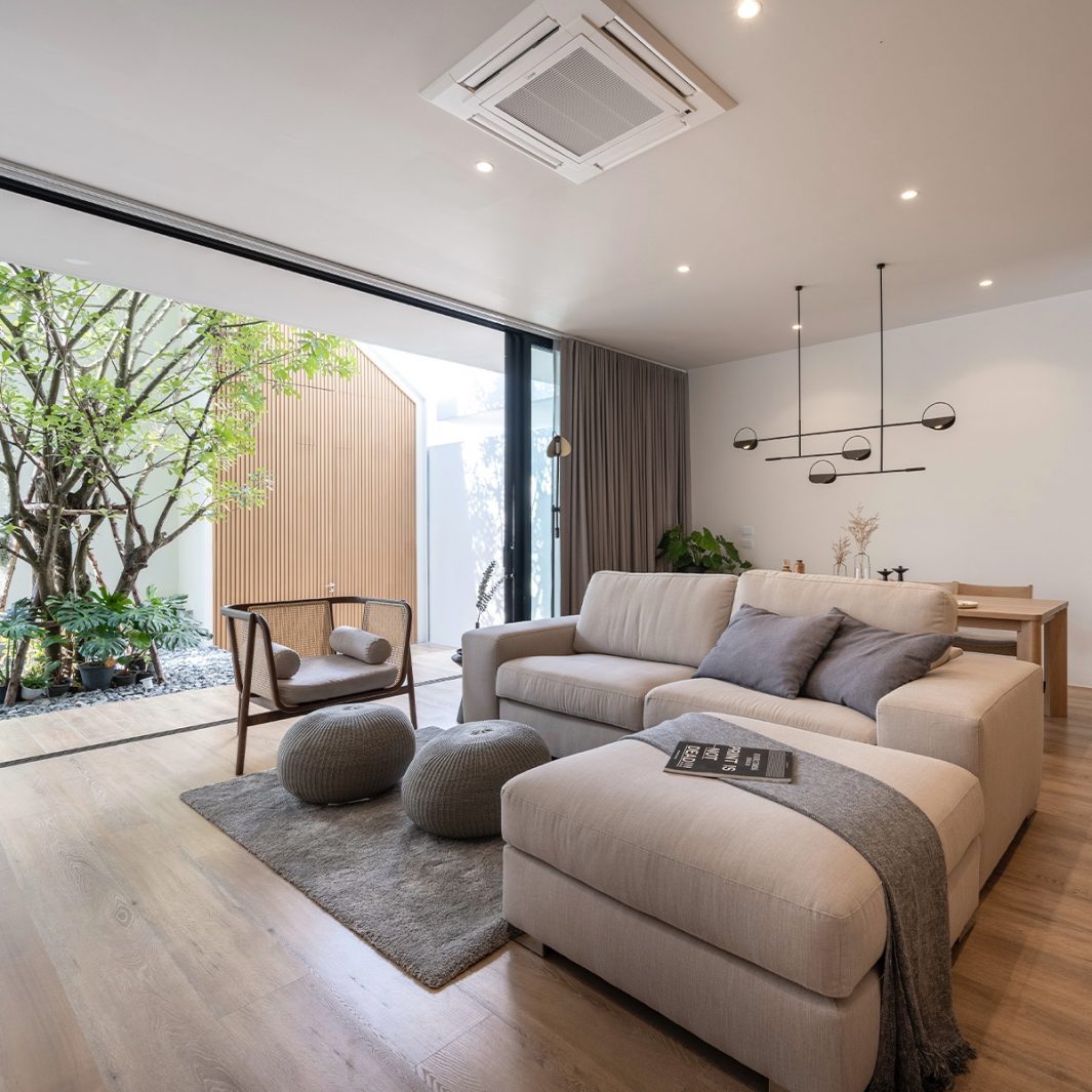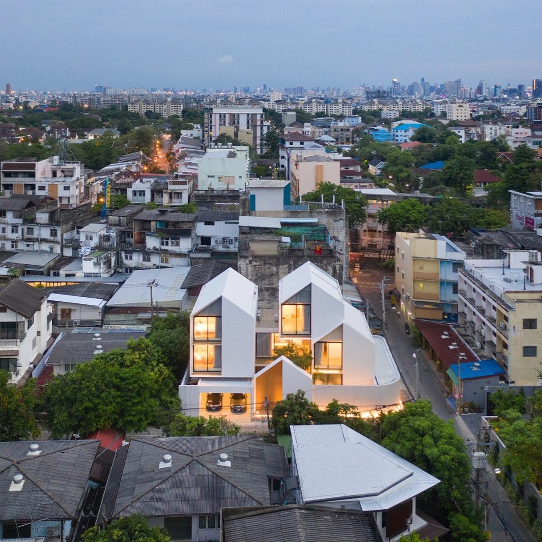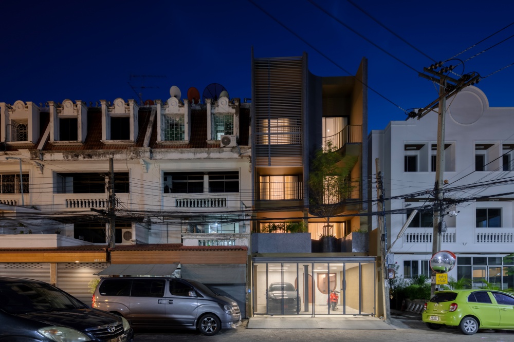 เป็นบ้านที่ใช้การออกแบบแก้ปัญหาความแน่นของพื้นที่ ให้กลายเป็นบ้านที่อยู่แล้วรู้สึกโปร่ง ลดเส้นขอบให้บาง ทำเส้นแบ่งพื้นที่ให้กลมกลืน เพื่อสร้างความต่อเนื่องระหว่างภายนอกกับภายใน ร่วมกับการออกแบบลดทอนรูปทรงและวางเยื้องกันให้เกิดคอร์ตขนาดเล็ก ที่ทลายความแน่นให้กลายเป็นความน่าอยู่ในฟังก์ชันที่ลงตัว >> อ่านเรื่องเต็ม