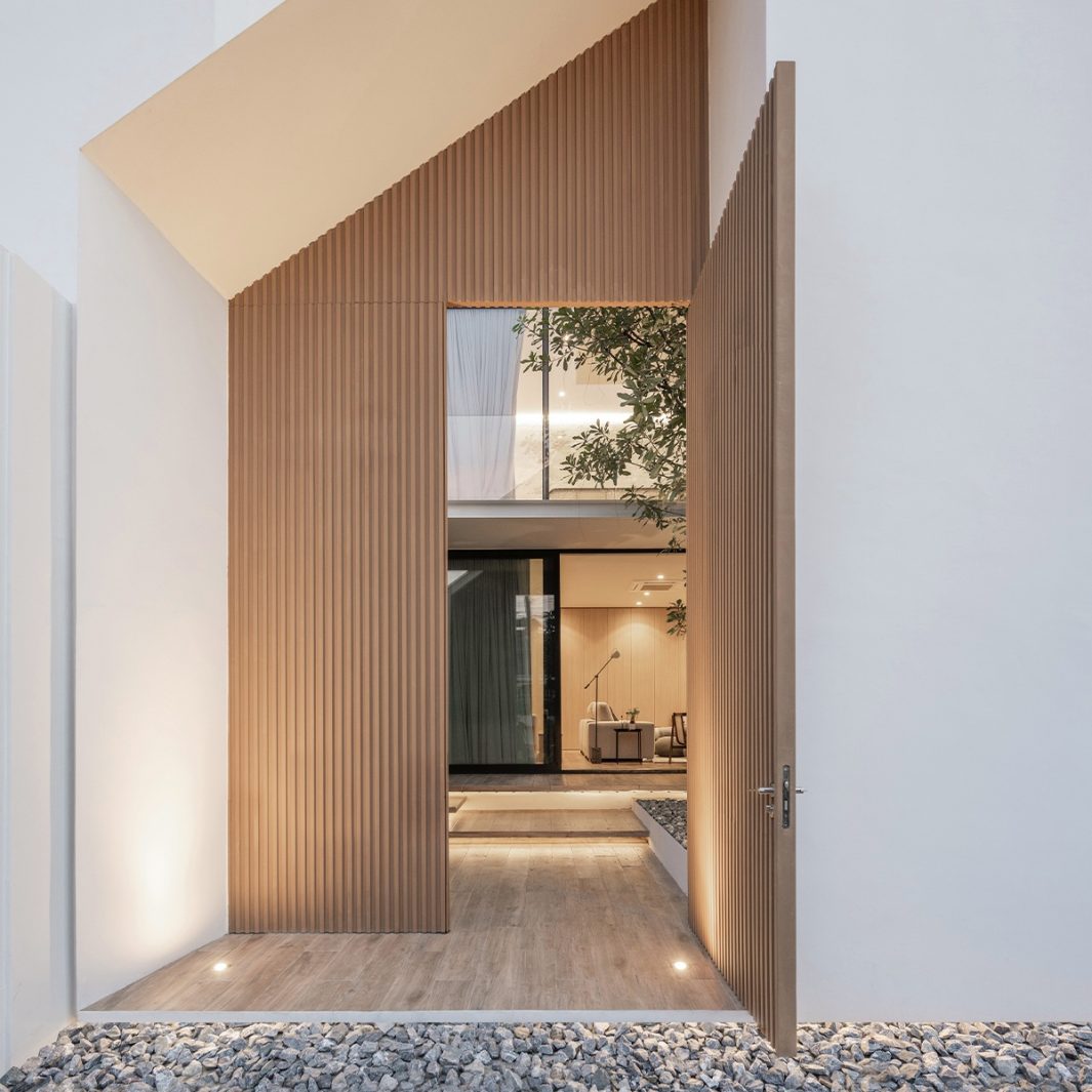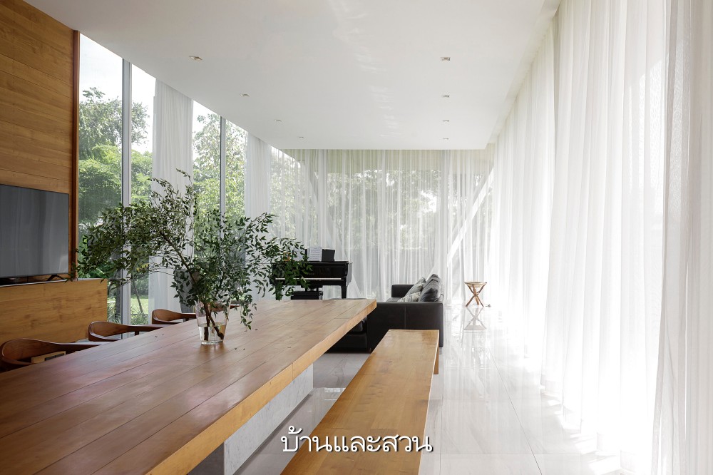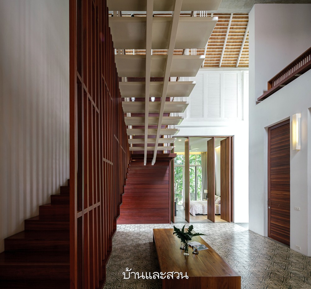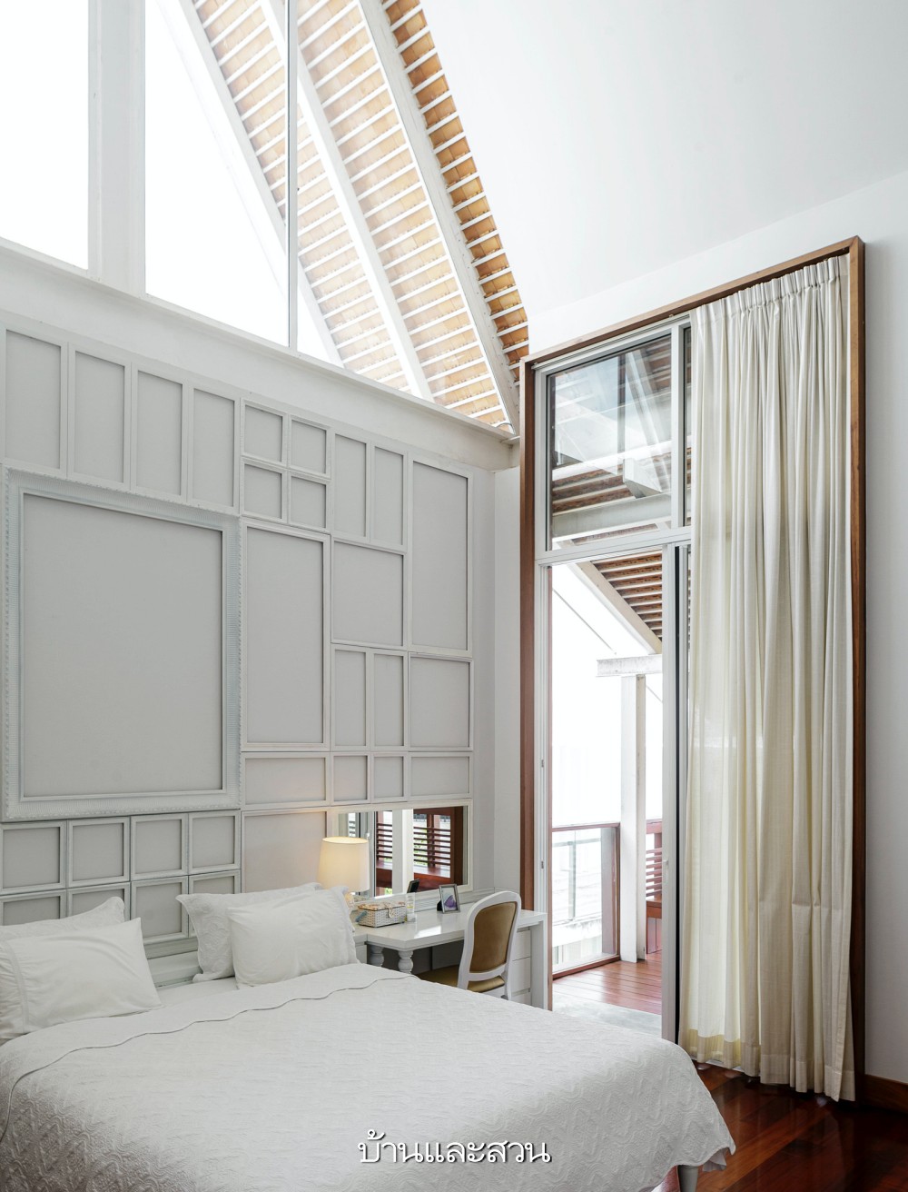 ภายใต้รูปทรงจั่วสีขาวโมเดิร์นนี้ ให้ความสำคัญกับการออกแบบที่สอดคล้องกับภูมิอากาศเขตร้อนชื้นและความเป็นธรรมชาติซึ่งเป็นหัวใจที่ทำให้บ้านอยู่สบาย ทั้งผสานความเป็นไทยกันแนวคิดโพสต์โมเดิร์นที่ความ “ต่างขั้ว” ถูกตีความให้เป็นทั้งความย้อนแย้ง การผสมผสาน และความงาม จนเป็นจุดบรรจบของวัฒนธรรมตะวันออกและตะวันตก >> อ่านเรื่องเต็ม