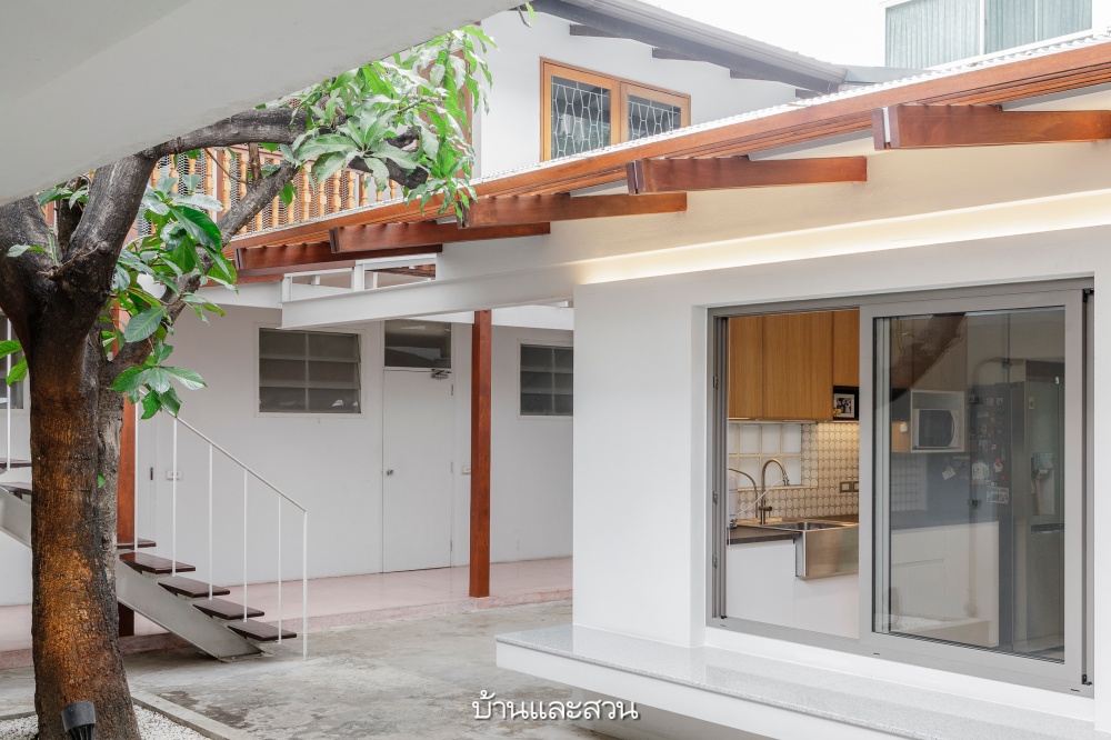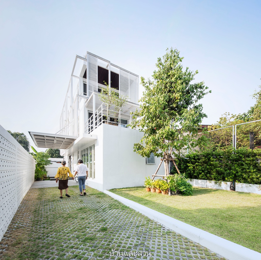 เป็นบ้านที่ตั้งโจทย์เพื่อความสบายของคุณแม่โดยไม่จำเป็นต้องอยู่แต่ในห้องแอร์ แม้เป็นบ้านหน้าแคบแต่ก็โปร่ง ปูพื้นไม้ที่เดินสบายเท้า ทำบันไดที่เดินได้ปลอดภัย และมีพื้นที่ทำกิจกรรมสร้างความสุขเล็กๆ น้อยๆ อย่างแปลงปลูกพืชสวนครัว แม้จะเป็นบ้านทรงโมเดิร์น แต่ภายในเต็มไปด้วยความอบอุ่นและวิถีชีวิตไทยๆที่คุ้นเคย >> อ่านเรื่องเต็ม