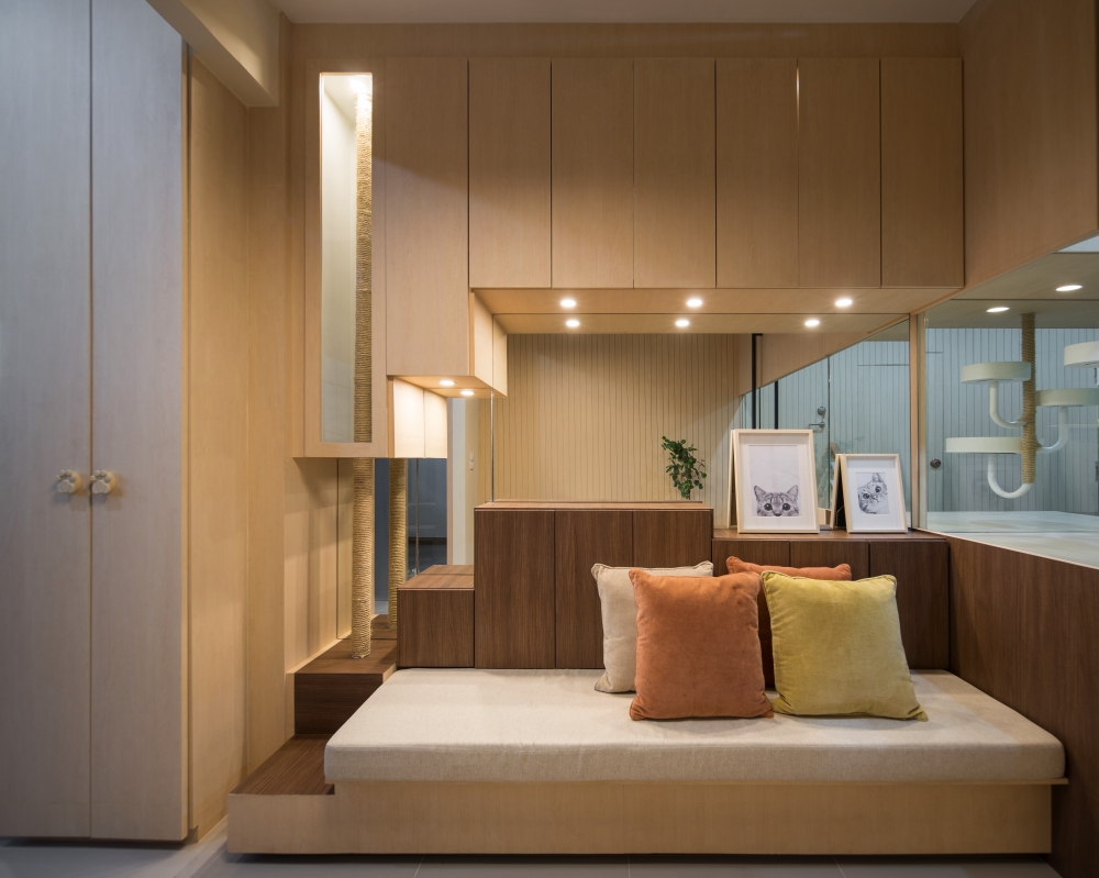 เป็นการผสานสเปซสำหรับแมวให้กลายเป็นส่วนเดียวกับคนได้อย่างลงตัวและอบอุ่น มีการออกแบบฟังก์ชันสำหรับเจ้านายสี่ขาทั้ง 8 ตัวโดยเฉพาะ และใช้ทุกพื้นที่เป็นที่เก็บของได้อย่างคุ้มค่าตามโจทย์ของเจ้าของ เป็นบ้านที่คนใช้ชีวิตร่วมกับแมวได้อย่างมีความสุขทั้งสองฝ่าย >> อ่านเรื่องเต็ม