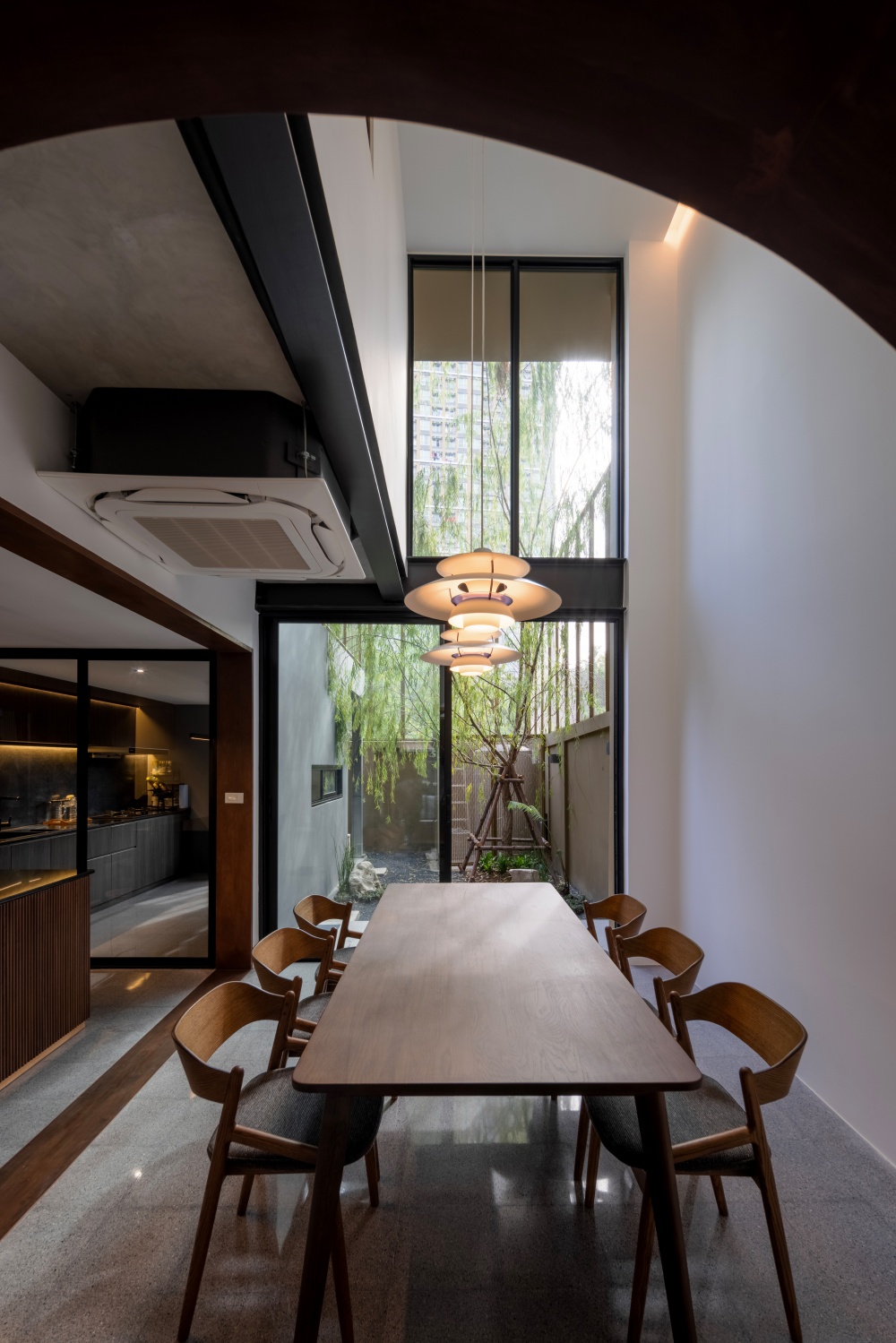 เปลี่ยนสเปซกล่องแบบทาวน์เฮ้าส์ให้มีมิติด้วยรูปทรงเรขาคณิตทั้งสี่เหลี่ยม วงกลม และครึ่งวงกลมในระนาบสองมิติสู่สเปซสามมิติ ต่อยอดแนวคิดผ่านคำว่า “ช่อง” ไม่ว่าจะเป็นช่องลม ช่องแสง รวมถึงช่องที่เชื่อมมุมมองระหว่างสเปซ โดยจัดสรรพื้นที่ใหม่ให้ตอบโจทย์ครอบครัวขยาย 3 เจเนอเรชั่น >> อ่านเรื่องเต็ม