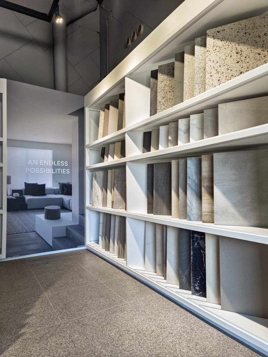 ตั้งแต่ก้าวแรกที่เข้ามา ตั้งใจให้ทุกๆบริเวณของโชว์รูมสร้างประสบการณ์ร่วมให้กับลูกค้าได้ ด้วยสินค้าของ WDC ทั้งหมด ไม่ว่าจะเป็นกระเบื้องนำเข้าจากหลากหลายประเทศ ทั้งอิตาลี อินเดีย อินโดนีเซียและมาเลเซีย วัสดุปูพื้น ผนัง รวมไปถึงวัสดุปิดผิวและอื่นๆอีกมากมาย ซึ่งในทุกโซนสามารถเข้ามาสัมผัสพื้นผิวและทดลองใช้ได้ และยังมีการจัดแสดงกระเบื้องทุกขนาดของ WDC อีกด้วย