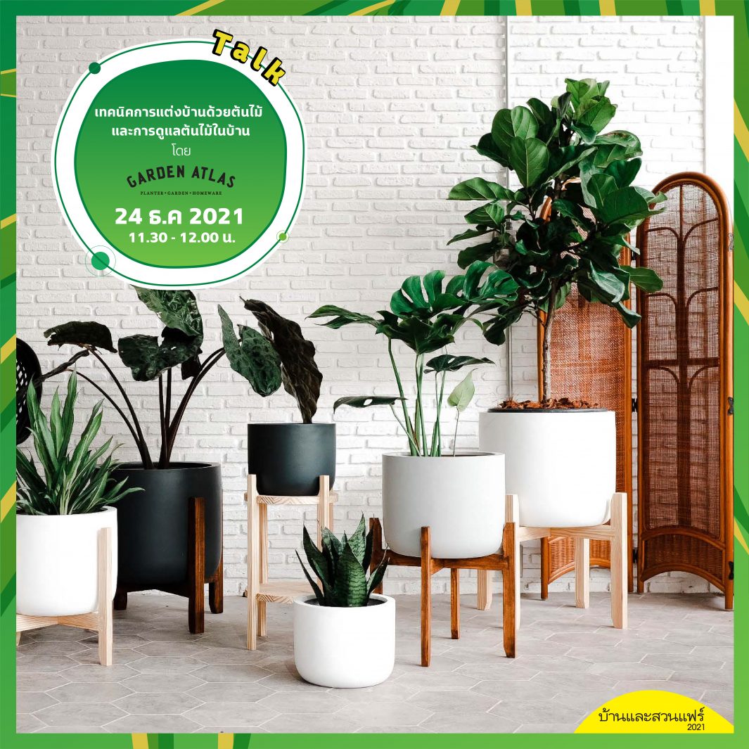 แนะนำเทคนิคการแต่งบ้านด้วยต้นไม้ และการดูแลต้นไม้ในบ้านให้สดชื่นอยู่เสมอจากกระถางและของแต่งบ้าน โดยวิทยากร คุณปุ๊ย-แพรวไพลิน ศิริชัยมนัส และ คุณแพท-ธัญญารัตน์ เธียรอำนาจ แห่ง Garden Atlas