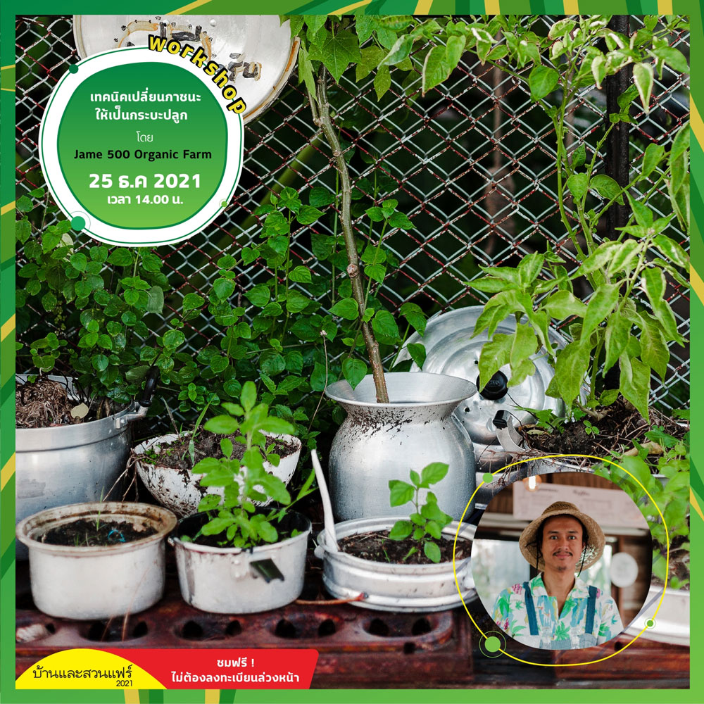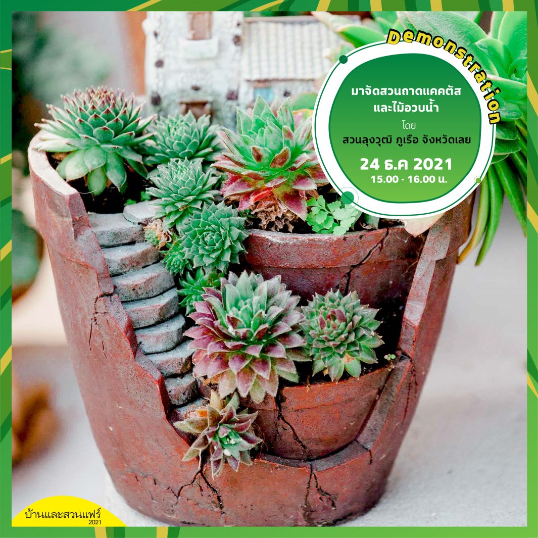 นอกจากจะมาช็อปปิ้งสินค้าที่น่าสนใจและหาไอเดียในการแต่งบ้านและสวนแล้ว ในงานบ้านและสวนแฟร์ 2021 ที่จัดขึ้นในวันที่ 17 – 26 ธันวาคม 2564 ณ ศูนย์นิทรรศการและการประชุมไบเทค บางนายังมีกิจกรรมอีกมากมายให้ได้ร่วมสนุกโดยเฉพาะการทำ workshop สาธิตและให้ความรู้หลากหลายด้านแบบฟรีๆ ซึ่งเราได้รวบรวมมาคุณเลือกทำกันแล้วดังนี้