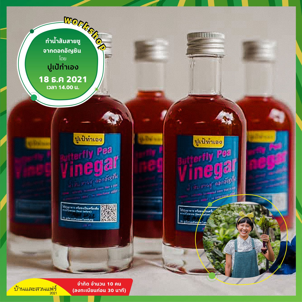 เรียนรู้และทำ workshop เปลี่ยนดอกอัญชันที่เก็บจากสวนครัวหลังบ้านให้เป็นน้ำส้มสายชูออร์แกนิก ปลอดภัยต่อสุขภาพ