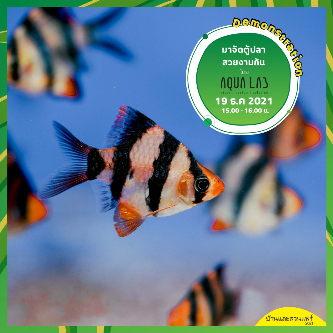 สาธิตการจัดสวนตู้ปลาสวยงามกัน จากเทคนิคการเลือกไม้น้ำให้น่าสนใจ การจัดวางไปจนถึงการเลือกชนิดปลาที่เหมาะสม โดยวิทยากรคุณปูน-บวรสุข วินิจธรรมกุล